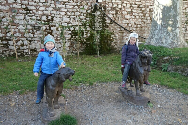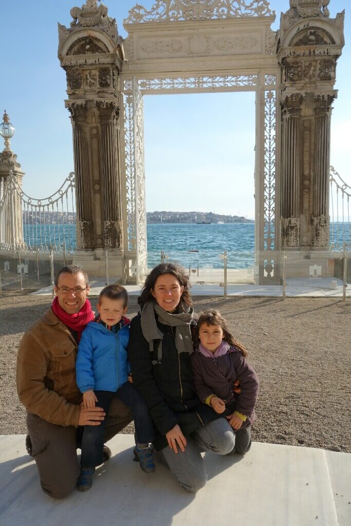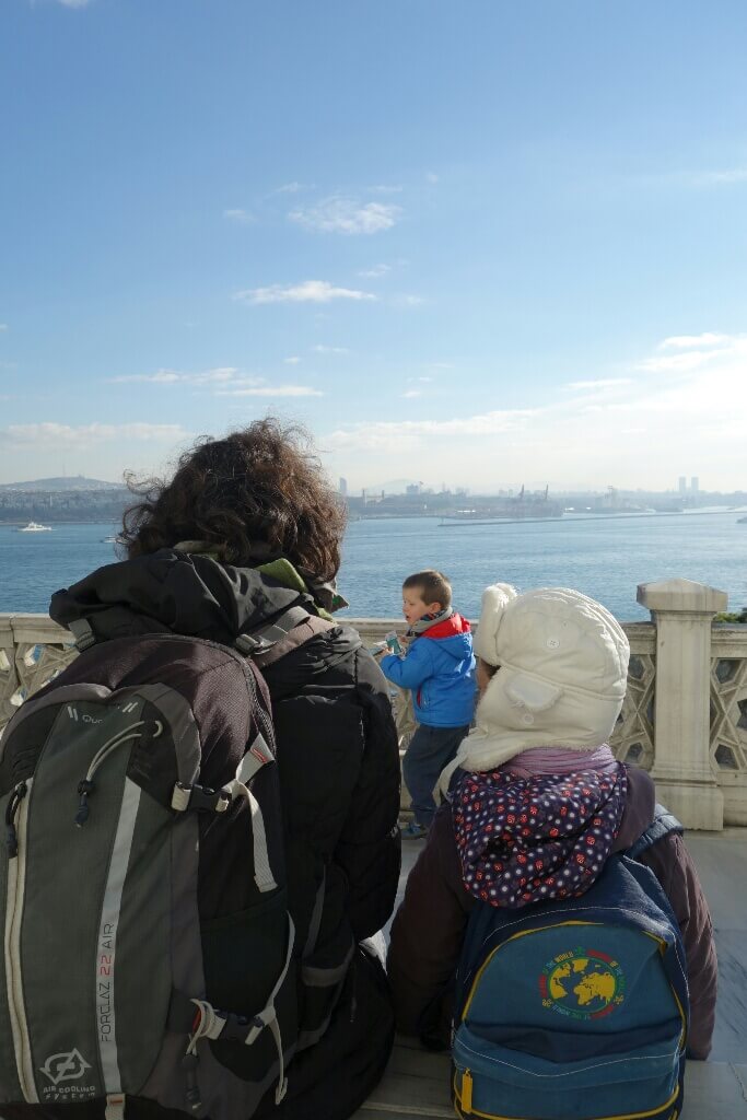 Le temps est magnifique sur le détroit. On voit un nombre impressionnant de minarets dépasser de la ville. L’appel à la prière intrigue d’ailleurs beaucoup Hugo. Au retour, on se trompe d’embarcadère. Mais on tombe sur le jardin du palais de Dolmabahçe.