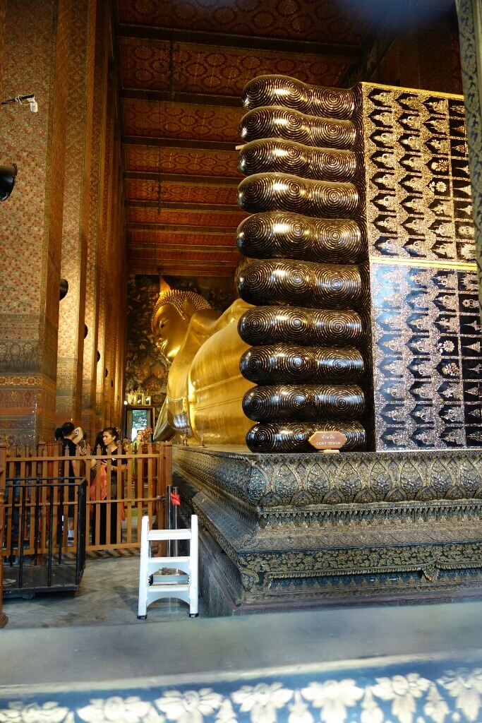 Nous visitons donc Wat Pho, le temple du bouda couché. Le site est immense avec des bâtiments très chargés en décorations et des boudas dans tous les bâtiments.