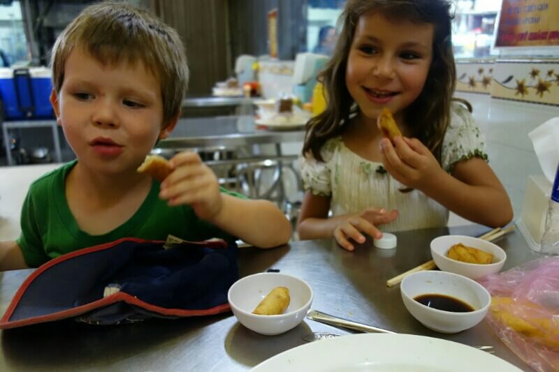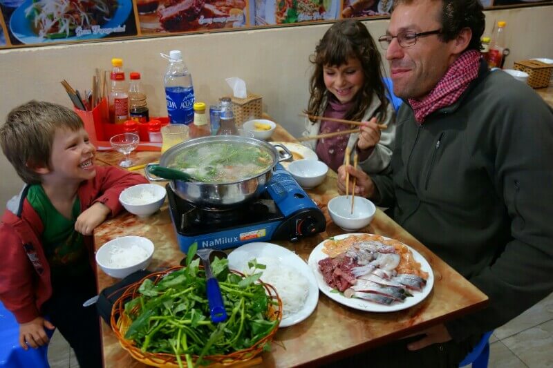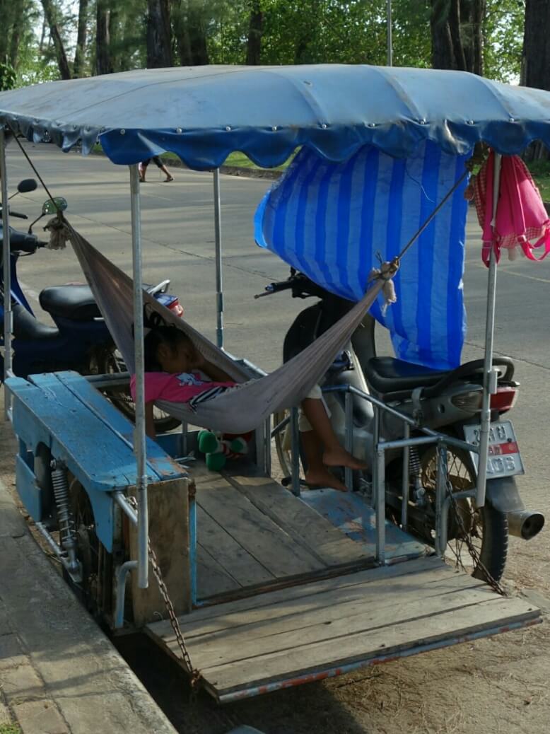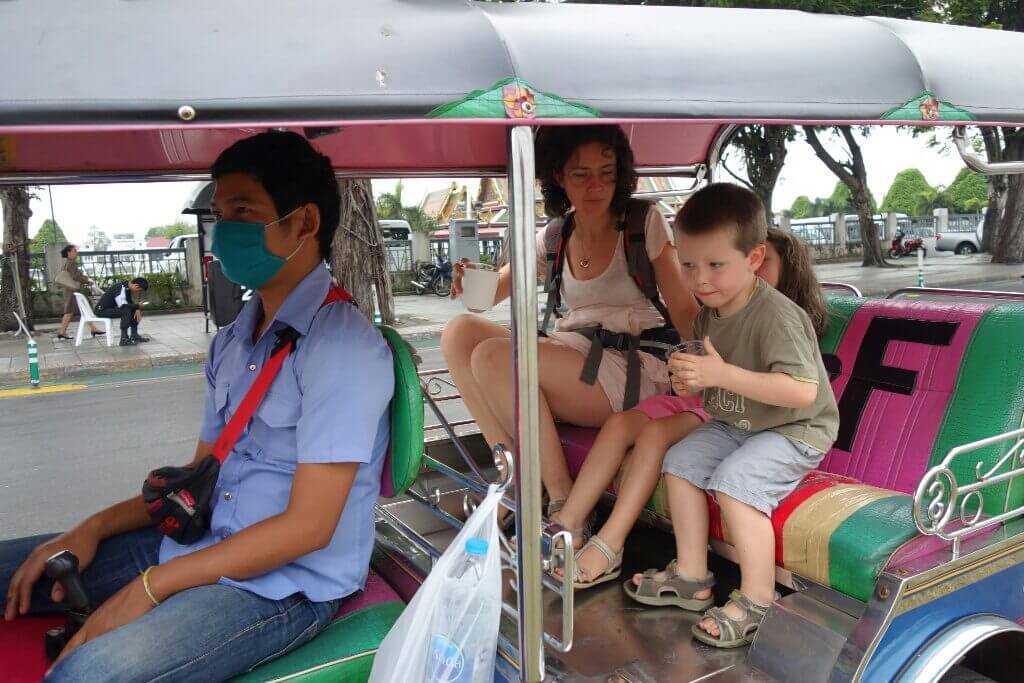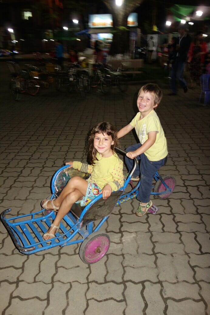 Le soir, on prend un Tuk-tuk, le transport préféré des enfants, pour un restaurant au bord de l’eau.