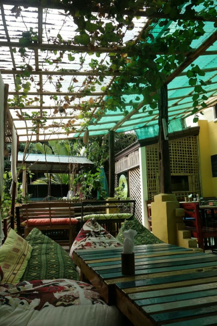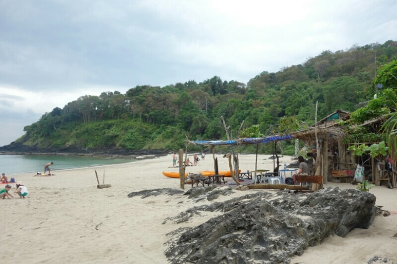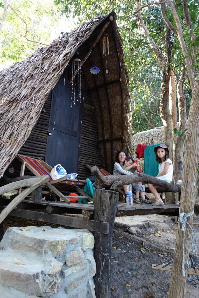 C’est donc après une bonne nuit qu’on nous annonce que la chambre promise après les 2jours dans la cabane aux moustiques ne sera disponible que le lendemain. Du coup, on craque, et on prend un bungalow à la plage d’à côté avec un peu plus de confort, 2 lits, un wc/douche, le rêve! Problème logement réglé .
