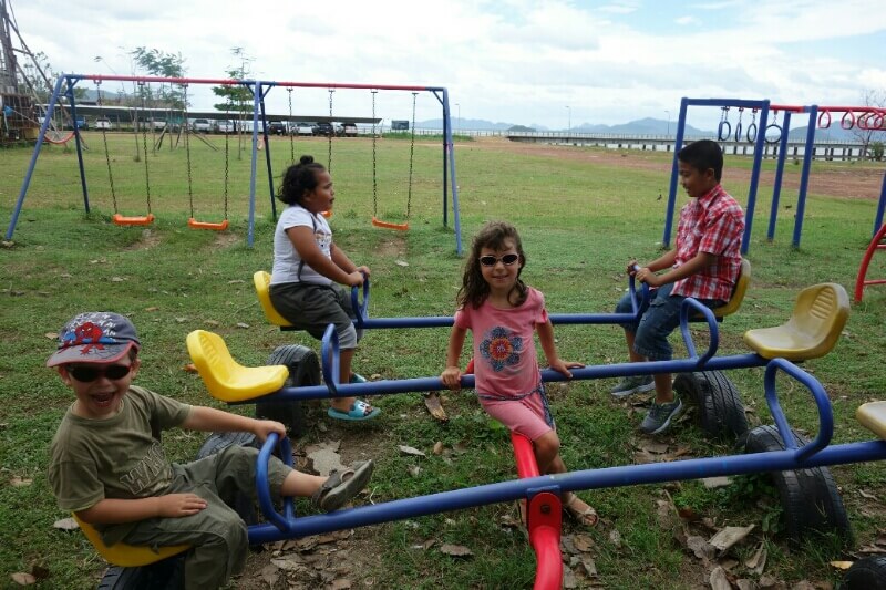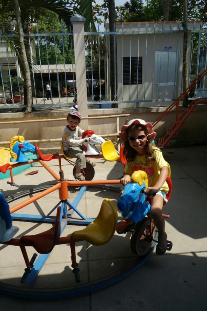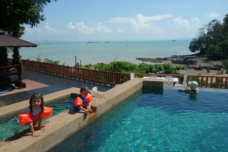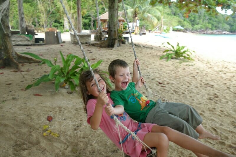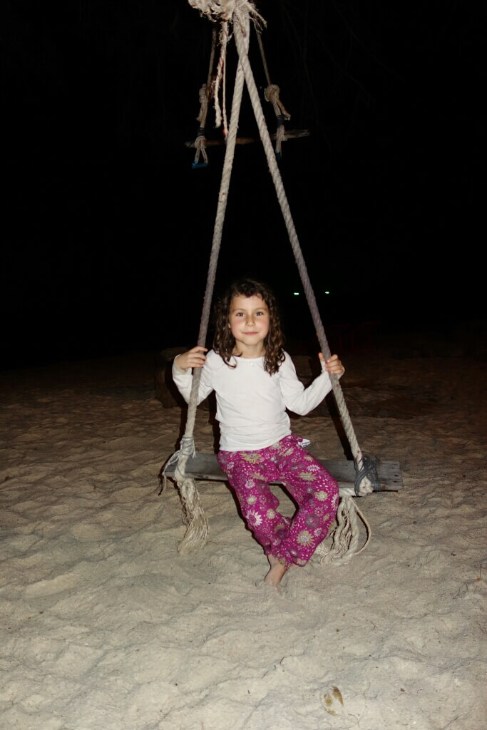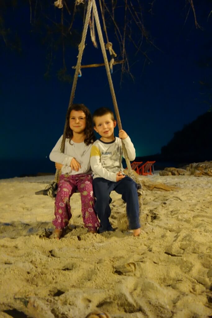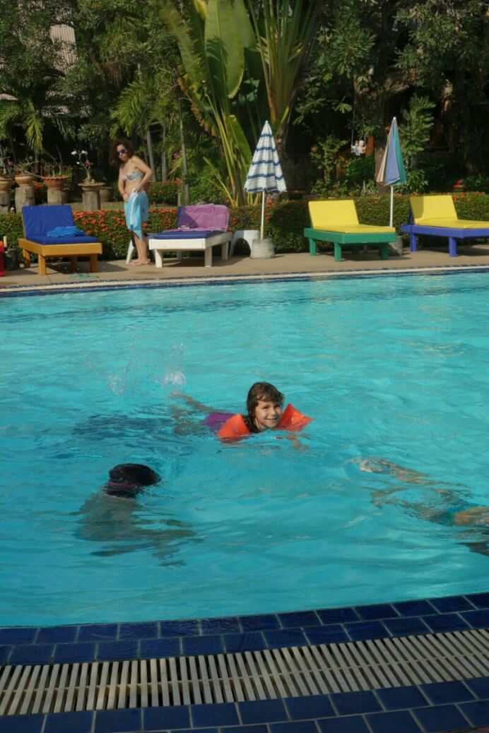 Louise et Hugo ont trouvé une baby sitter : une thaïlandaise de 13ans qui leur fait faire des tours de balançoire de folie! on en profite pour nager un peu.