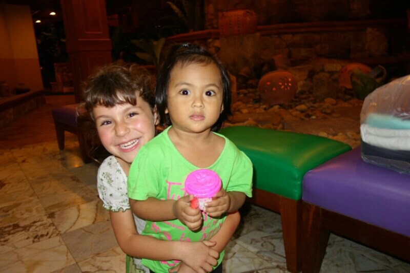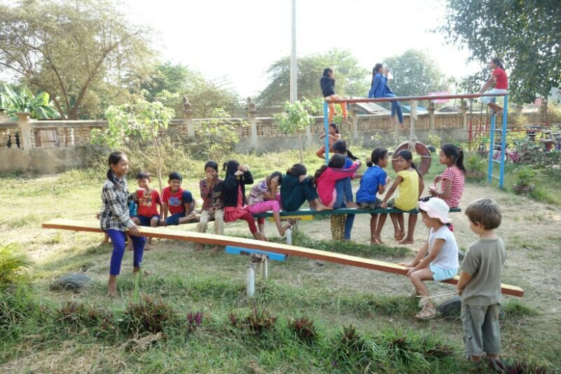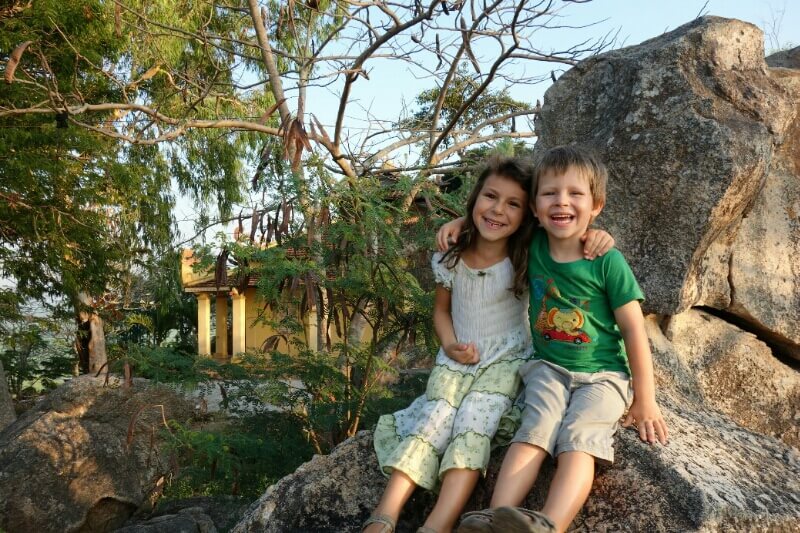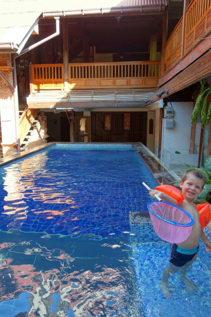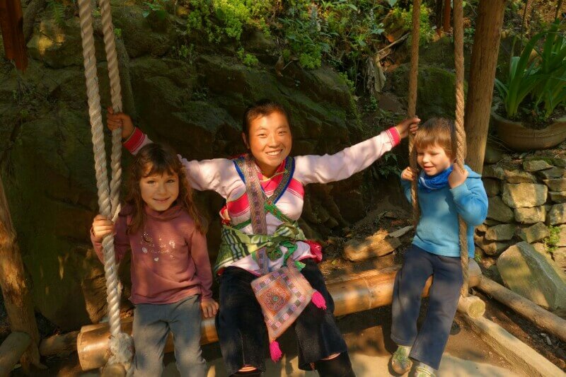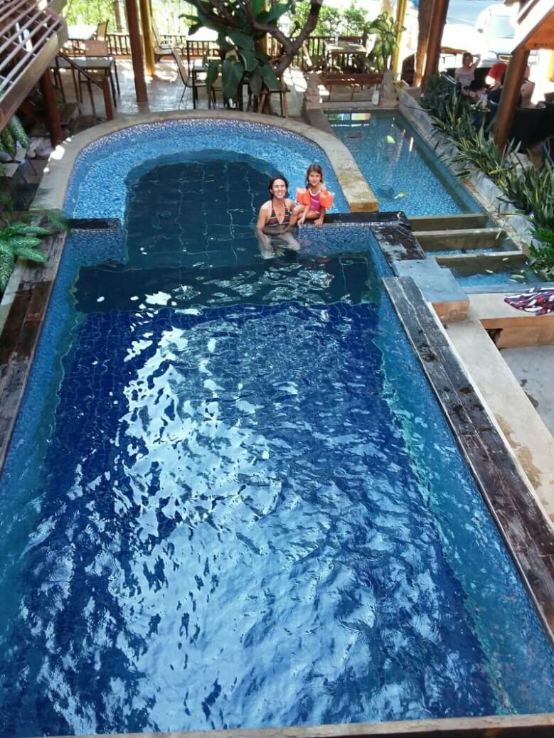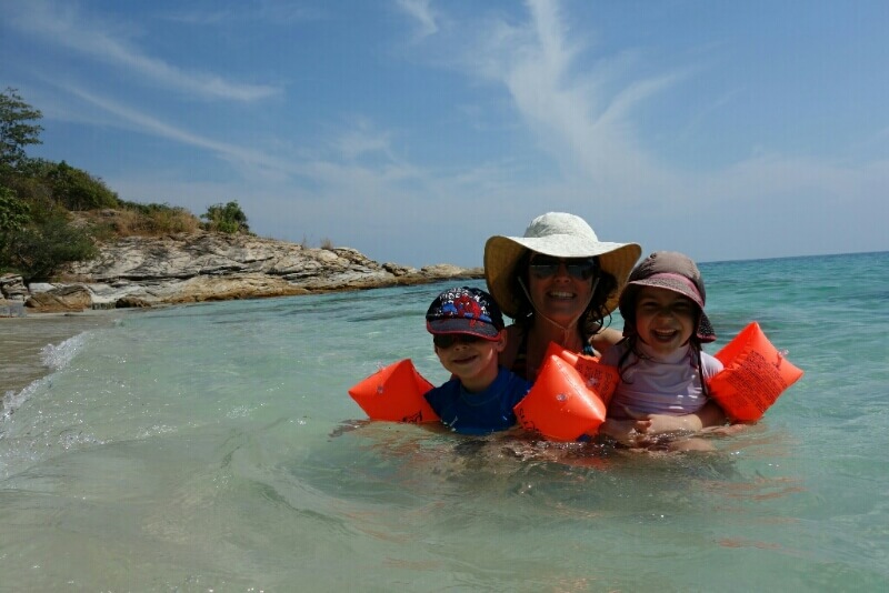 Louise et Hugo ont trouvé une baby sitter : une thaïlandaise de 13ans qui leur fait faire des tours de balançoire de folie! on en profite pour nager un peu.