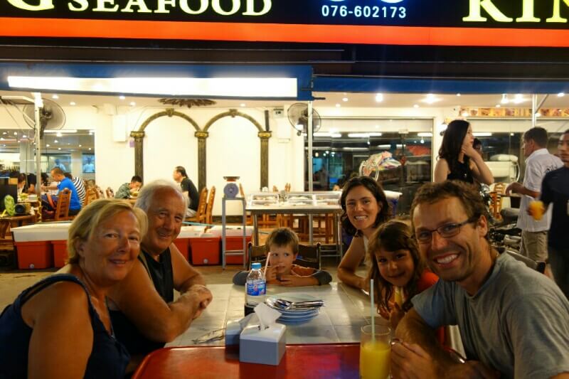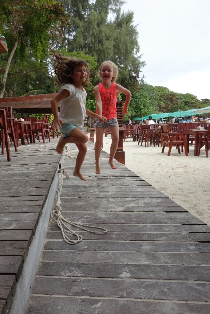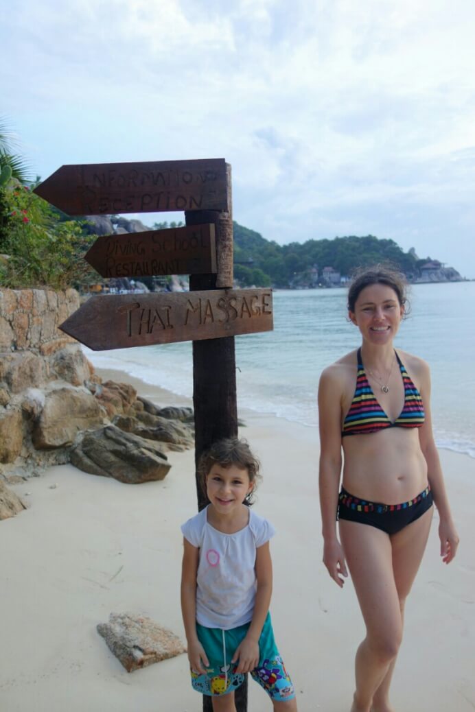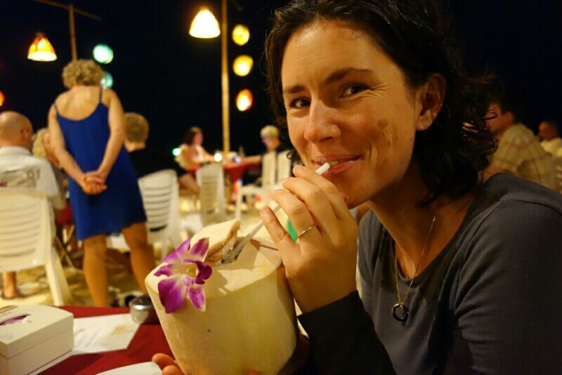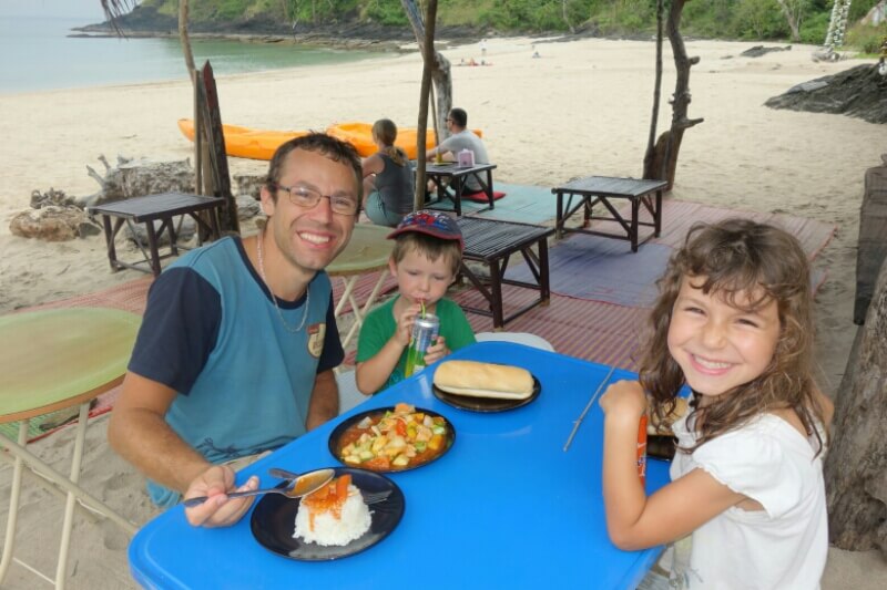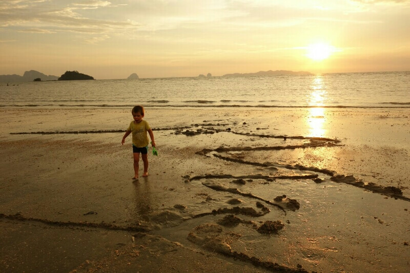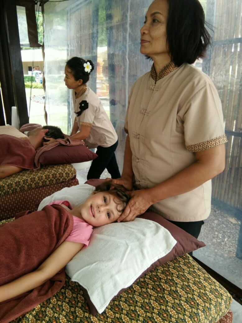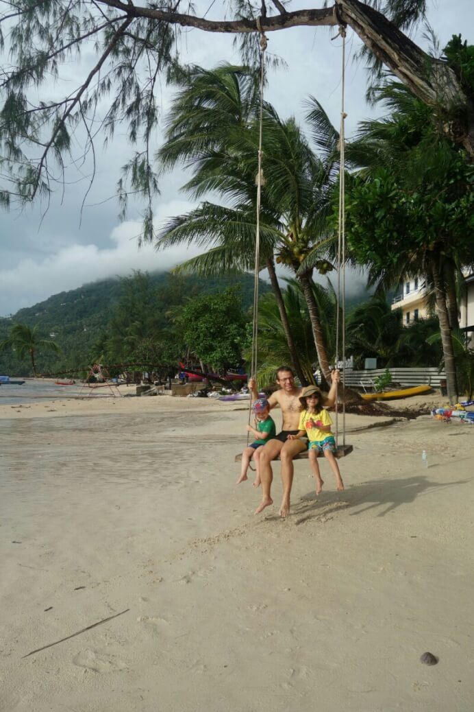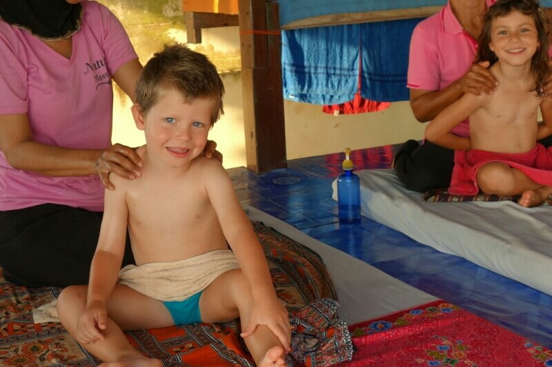 Adrian (le papa hollandais) a testé le massage Thaï, il est sorti tout cassé, ils se mettent carrément debout sur le corps (et les masseuses sont plus des mamas en chair que des tops modèles anorexiques…). Du coup, on a testé, pour la première fois du voyage, un massage à l’huile de coco. Super moment sur la plage avec une odeur de noix de coco. petit bémol pour moi, j’ai choisi l’heure des moustiques.