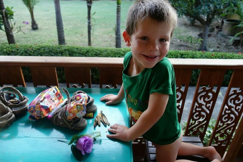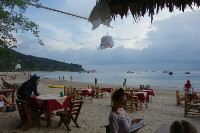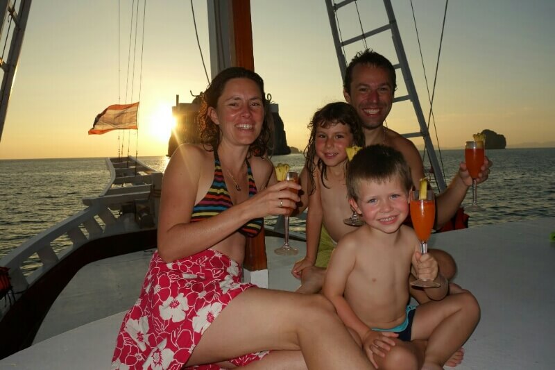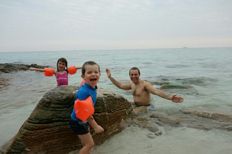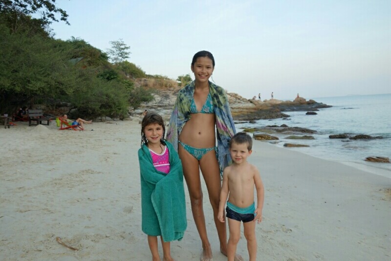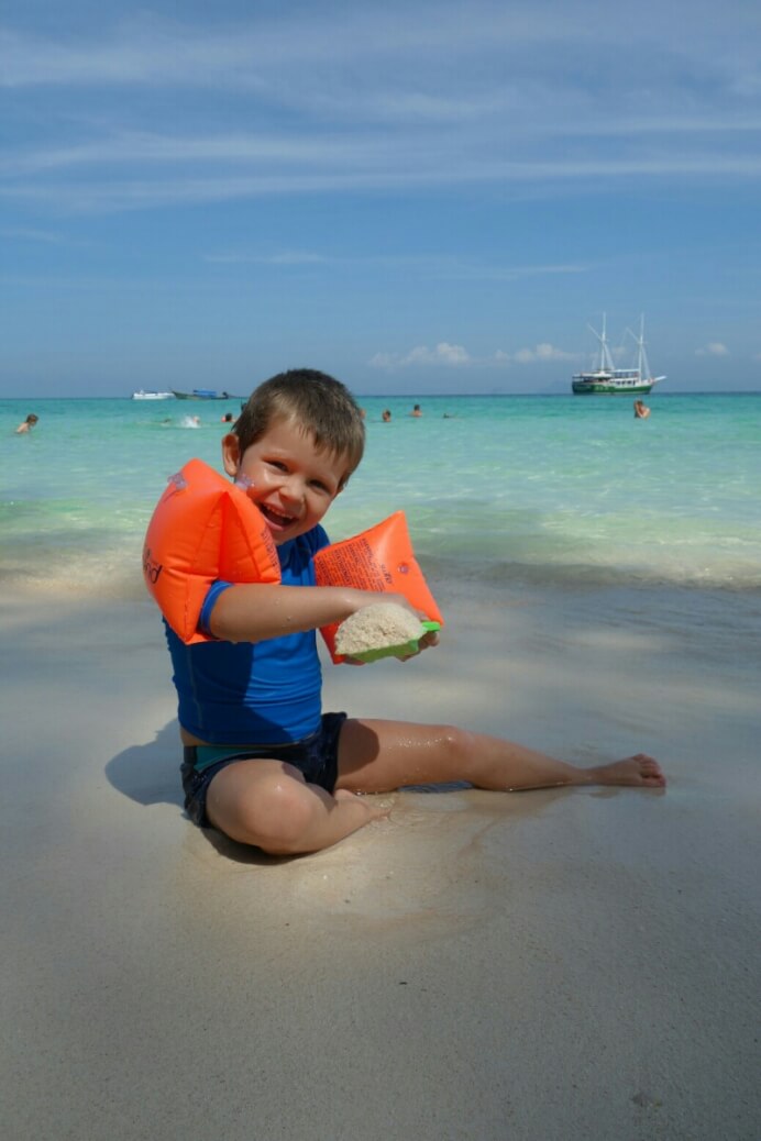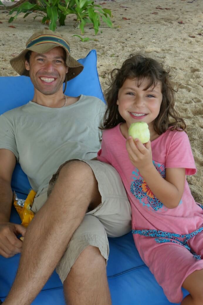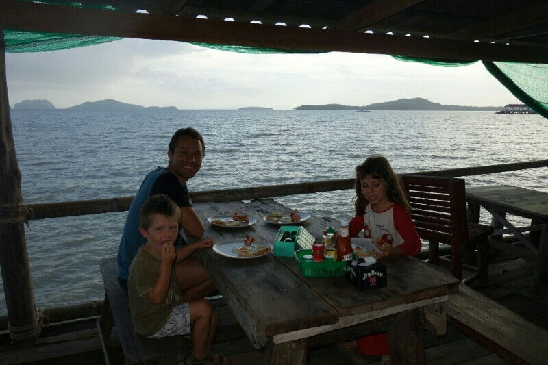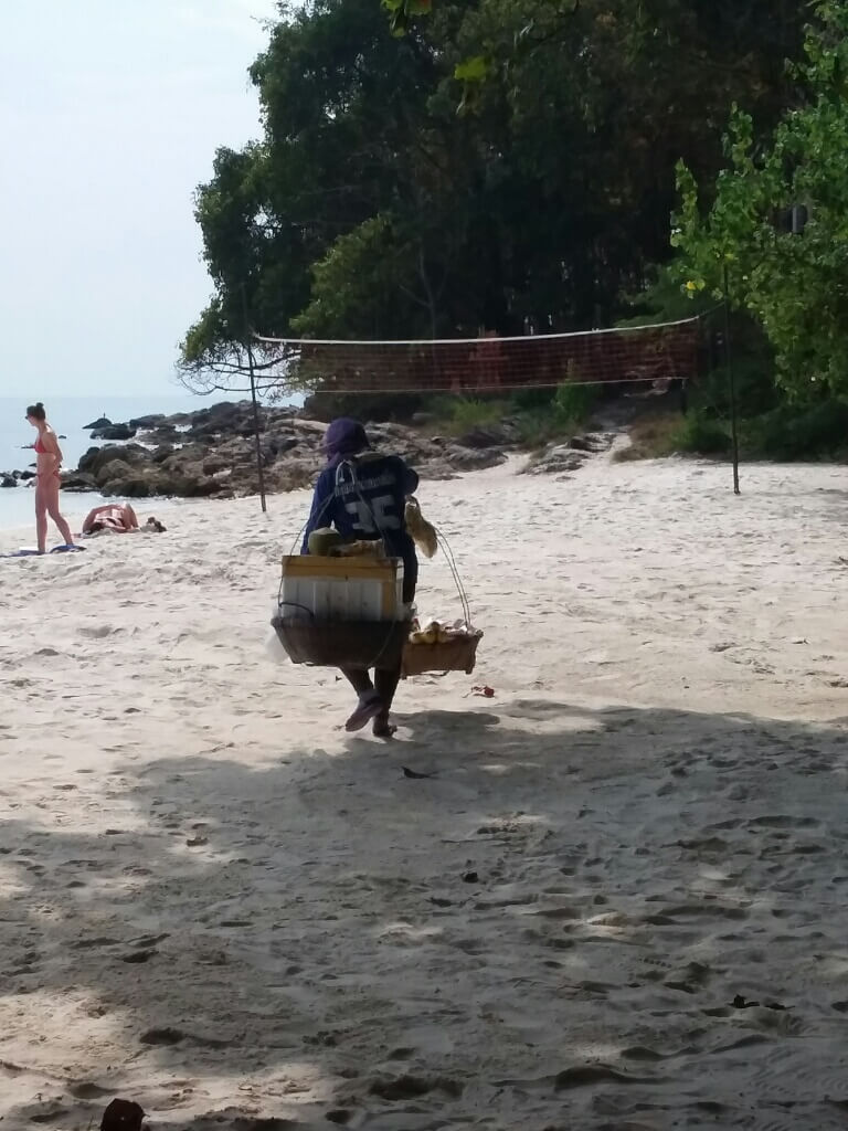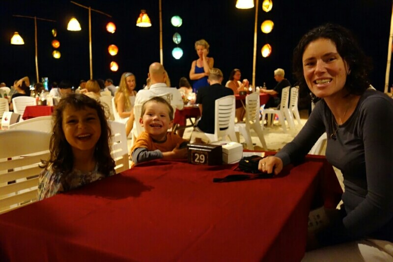 Adrian (le papa hollandais) a testé le massage Thaï, il est sorti tout cassé, ils se mettent carrément debout sur le corps (et les masseuses sont plus des mamas en chair que des tops modèles anorexiques…). Du coup, on a testé, pour la première fois du voyage, un massage à l’huile de coco. Super moment sur la plage avec une odeur de noix de coco. petit bémol pour moi, j’ai choisi l’heure des moustiques.