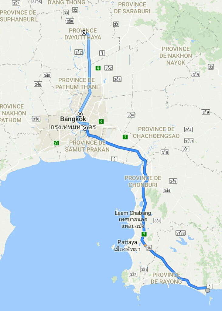 Tout s’enchaîne pour ko samet : taxi, bts et minibus qui part 1min après avoir pris les tickets. D’ailleurs 3 billets pour 600 bath (15€) pour 3h30 de bus, c’est quand même moins cher que la sncf! 😍