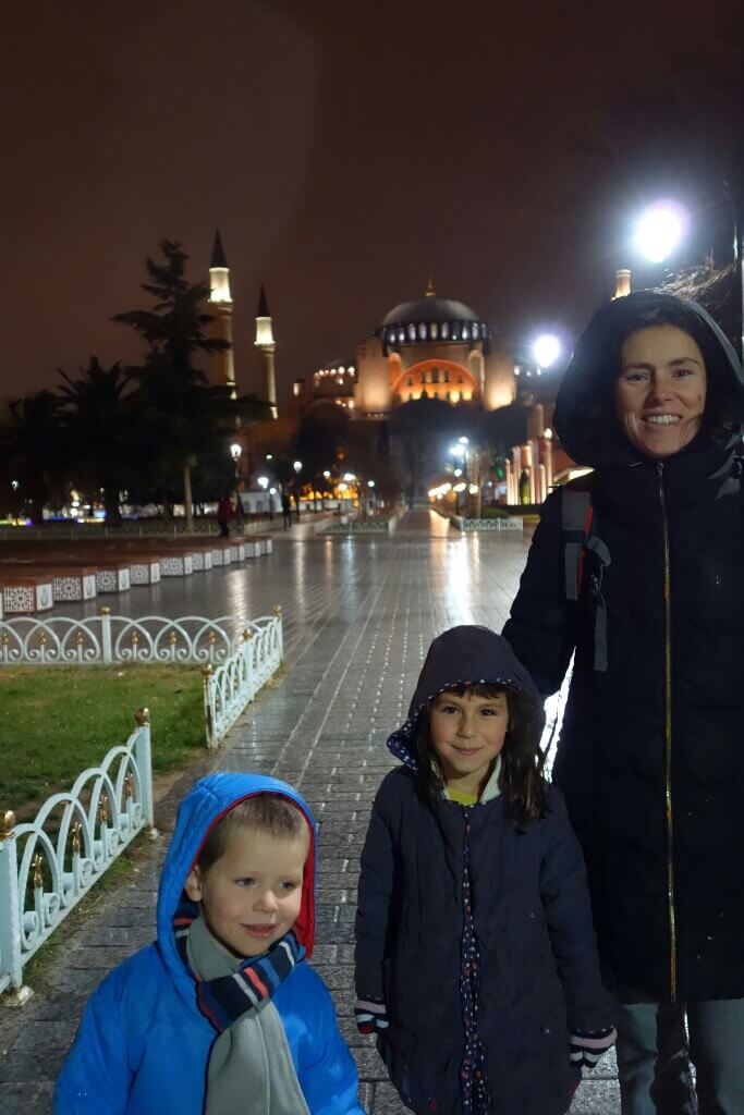 Sortie de sainte Sophie., on se dirige vers le grand bazar, marché mythique. Hugo et Louise dévorent l’épi de maïs qui était la carotte pour marcher le km. Manque de bol, c’est fermé le dimanche. On se rabat sur le marché aux épices et milles échoppes ultra spécialisées (certains ne vendent que des ceintures sur 30m2 ou des déguisements. ..) l’odeur des épices chatouille les narines suivie d’odeur de poisson ou châtaignes grillées.