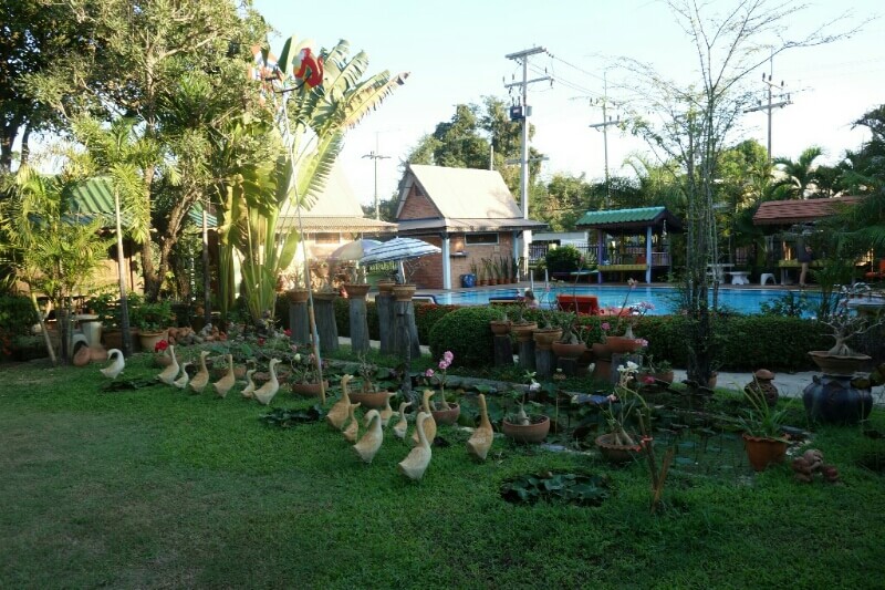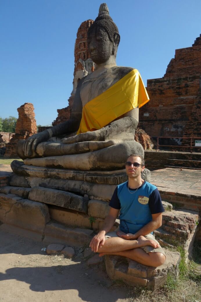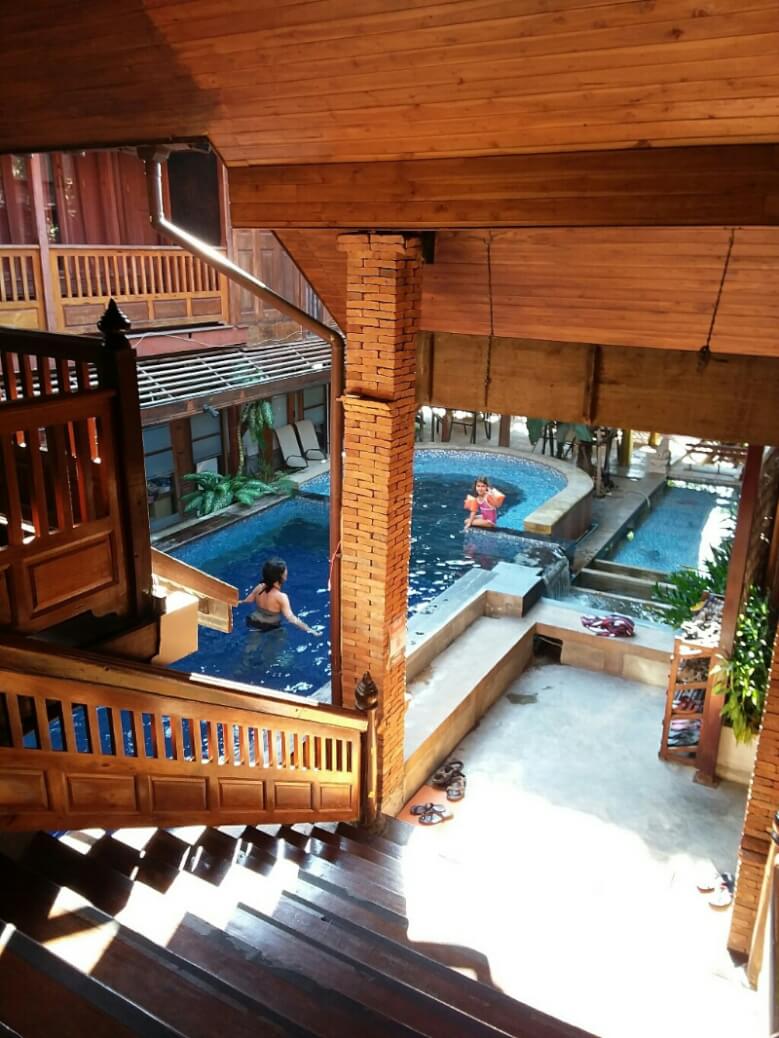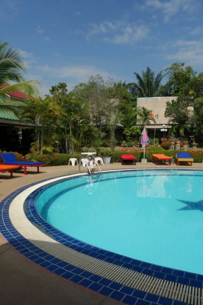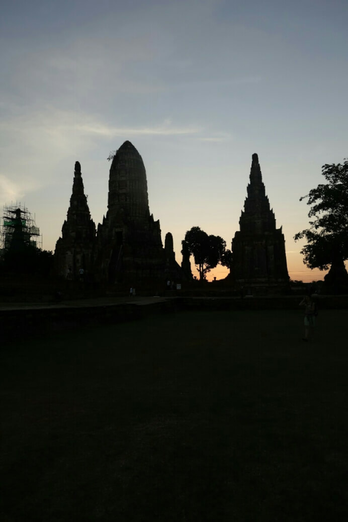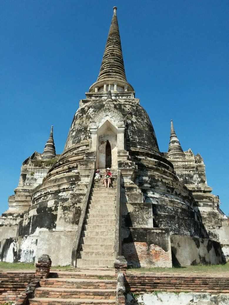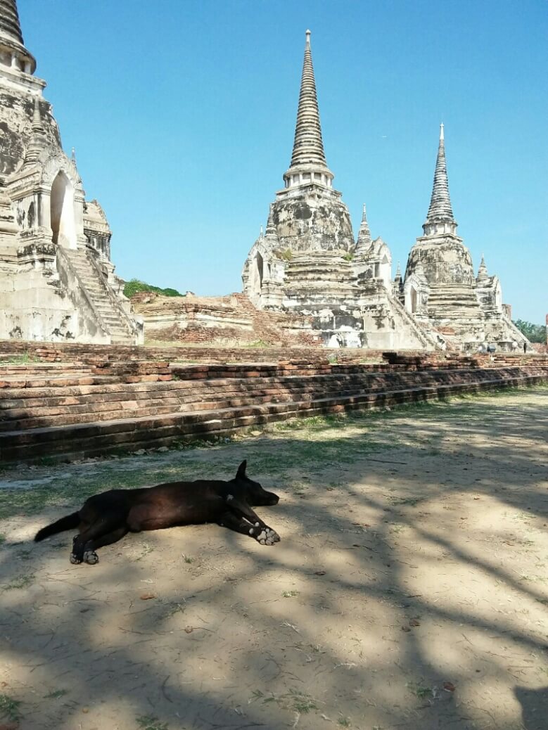 Mais nous voici dans l’ancienne capitale du Siam (ancien nom de la Thaïlande). Hôtel sympa avec piscine et grande chambre familiale (1500Bt/nuits) où on profite (un peu trop) des concerts des bars alentours ..