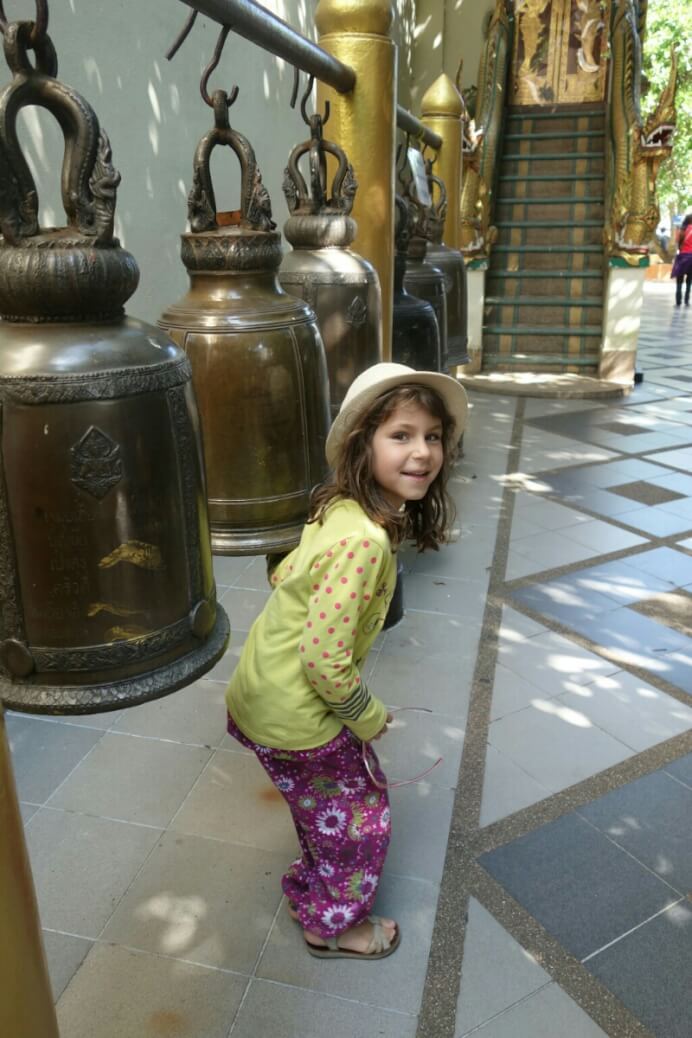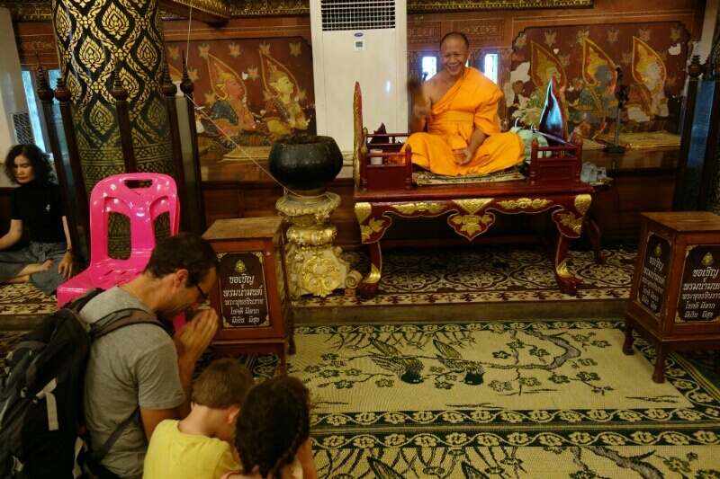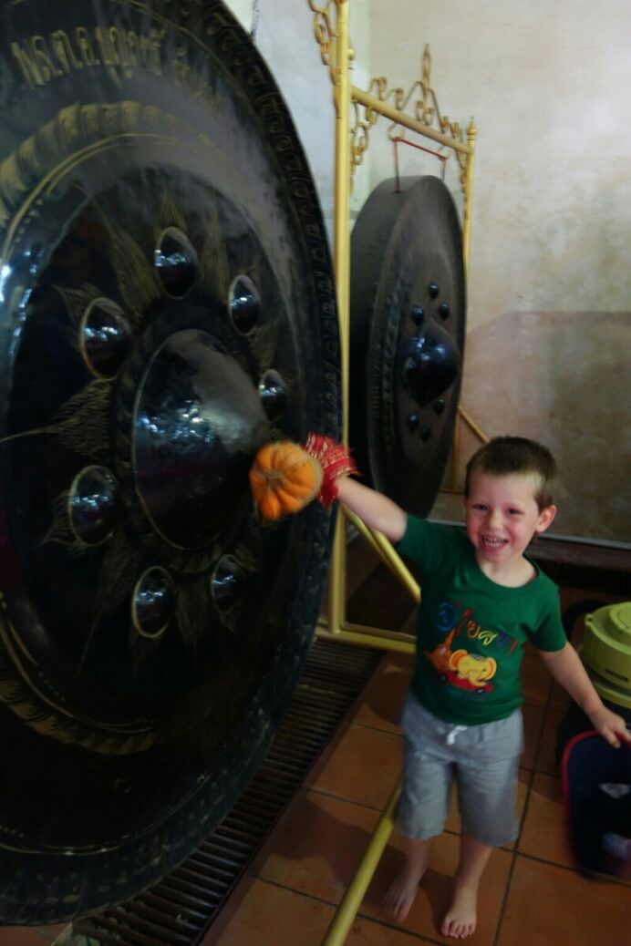 Un Thaï nous incite à utiliser les gros gongs dans un temple.. il faut qu’on trouve la signification du geste.