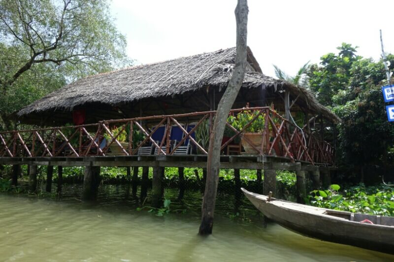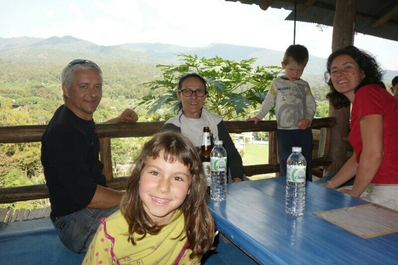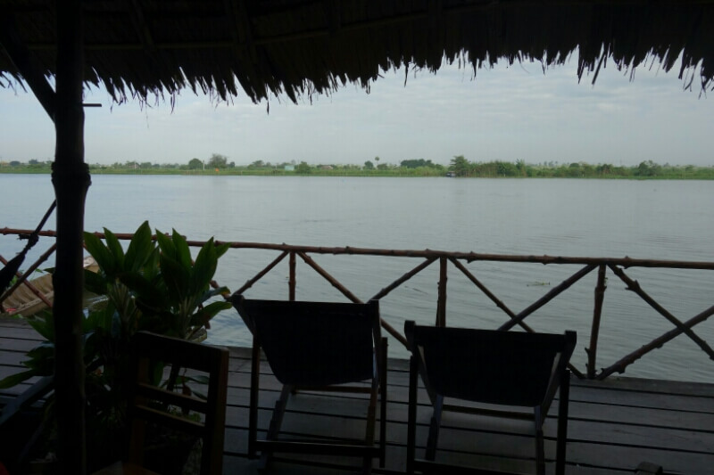 Du coup que des thaïlandais dans le restaurant , aucun touristes, super point de vue sur le fleuve ouf. par contre, leurs barques avec moteur diesel avec un tuyau soudé en guise de pot d’échappement font un boucan d’enfer.