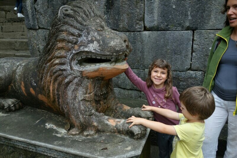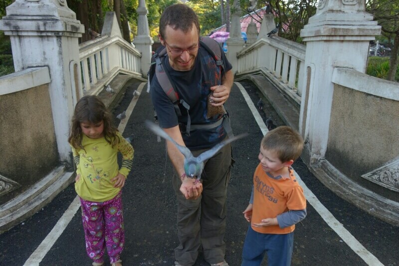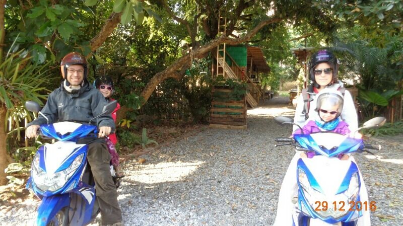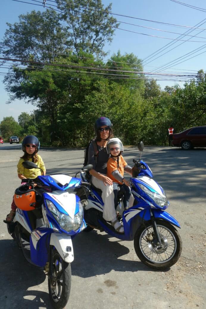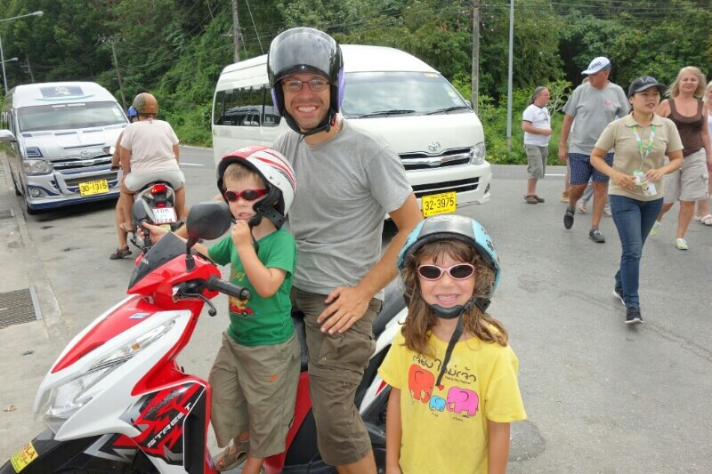 On continue la journée par un tour de moto, avec chauffeur pour visiter les alentours. La pluie devait s’arrêter à 10h d’après google… mais on apprécie les capes de pluie, légèrement grandes pour les enfants (taille unique en fait).