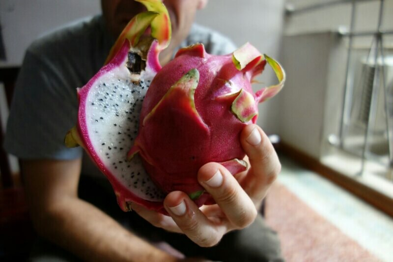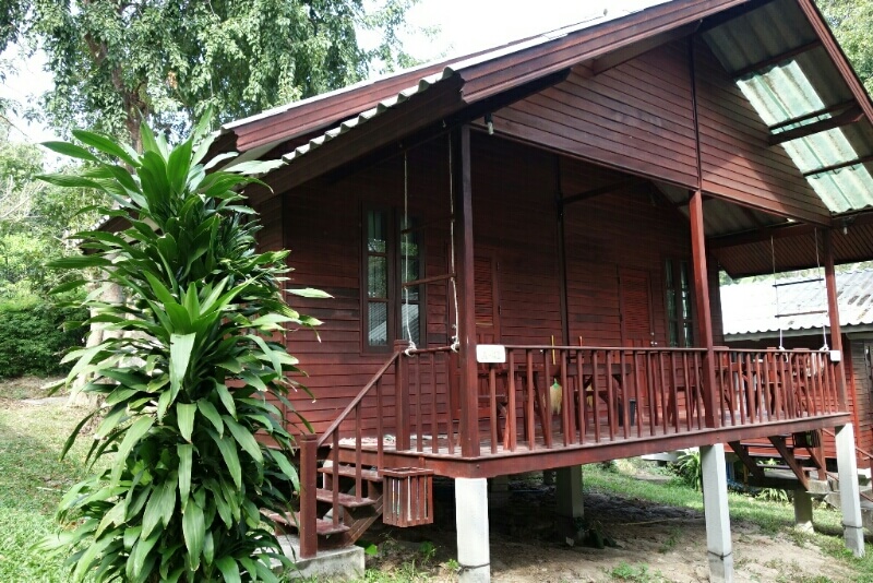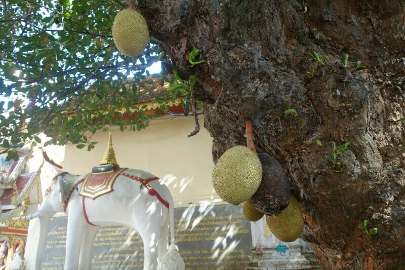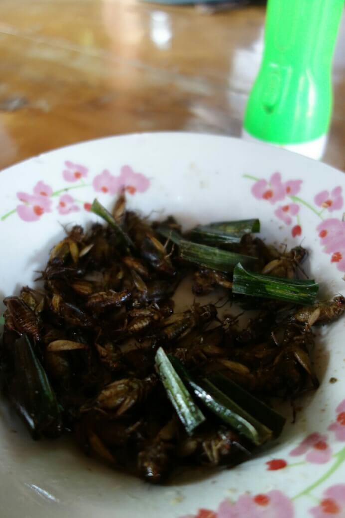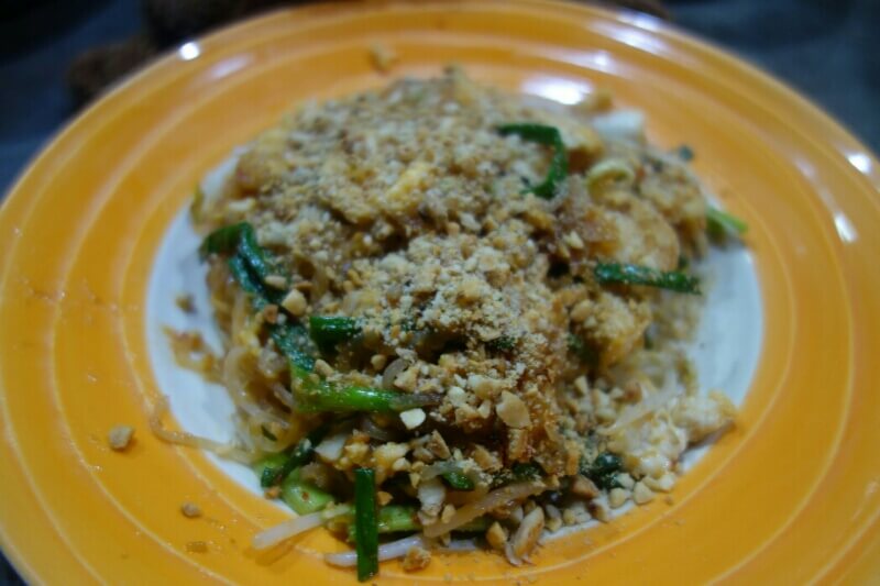 Nous avions réservé via airbnb une grosse cabane, moyennement bien située mais au calme (ce qui est perle rare à Bangkok). Le cadre est parfait pour se relaxer : un jardin tropical avec des dizaines de plantes dont orchidées, bananiers, fleur de nénuphar ou d’autres que je ne connais pas.. On grignote nos premières brochettes Thaï et petites bananes cueillies à point (on est pas encore prêt pour les insectes grillés ) !