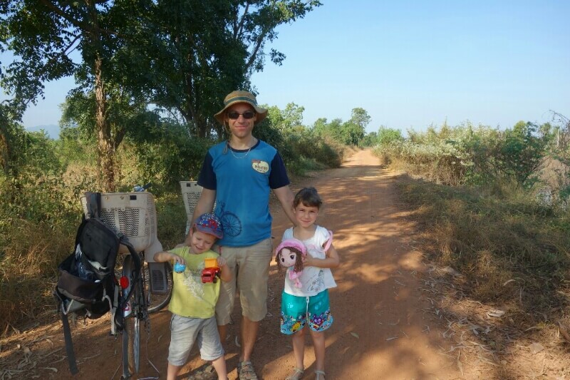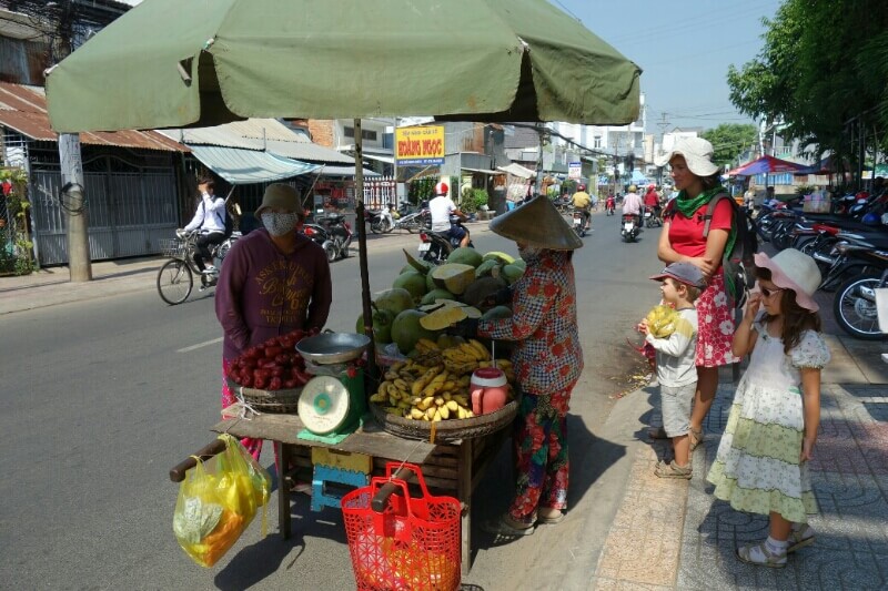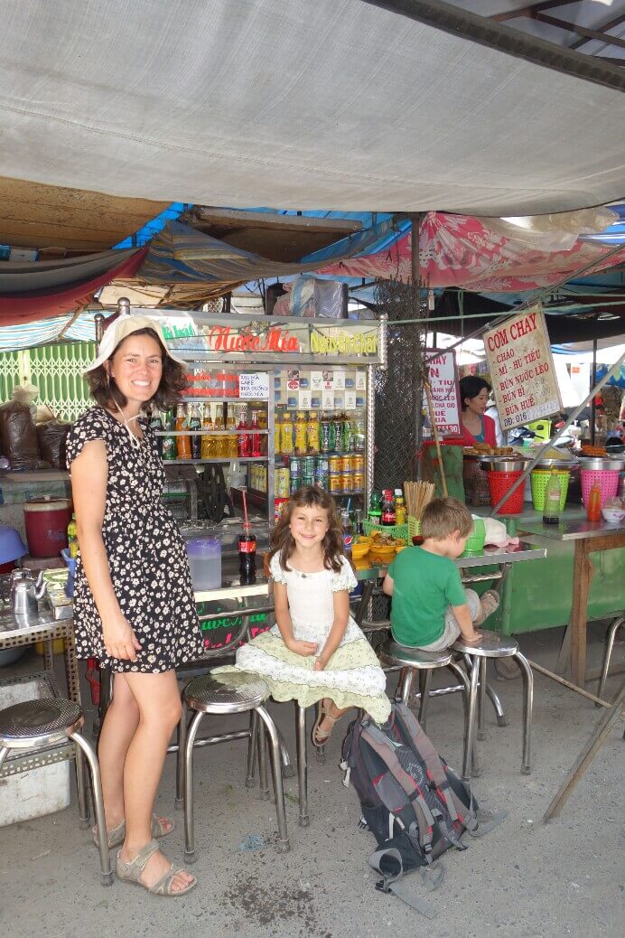 Vers 1h, on était encore à 2km du restaurant prévu. Marion et les enfants prennent une moto taxi afin d’avancer. Hugo marche toujours avec entrain pendant qu’on chante des chansons avec Louise (qui a élu domicile sur mon dos).