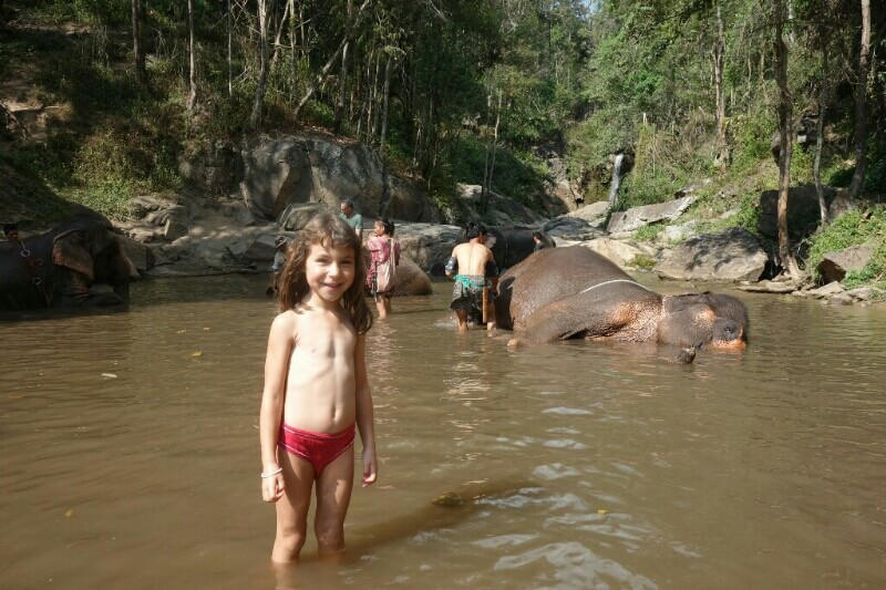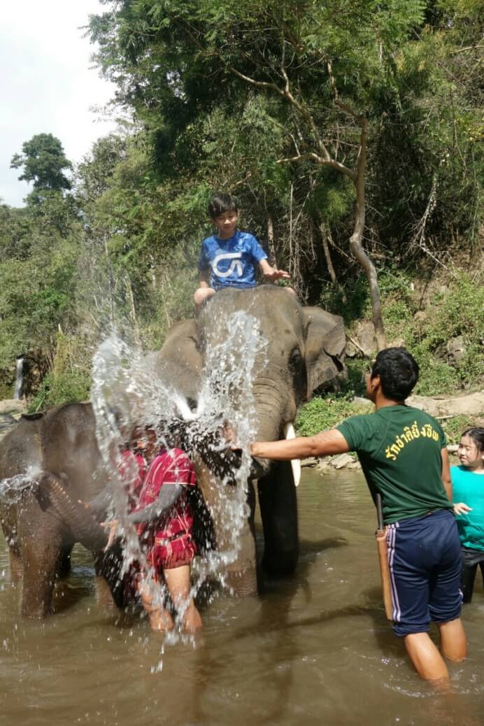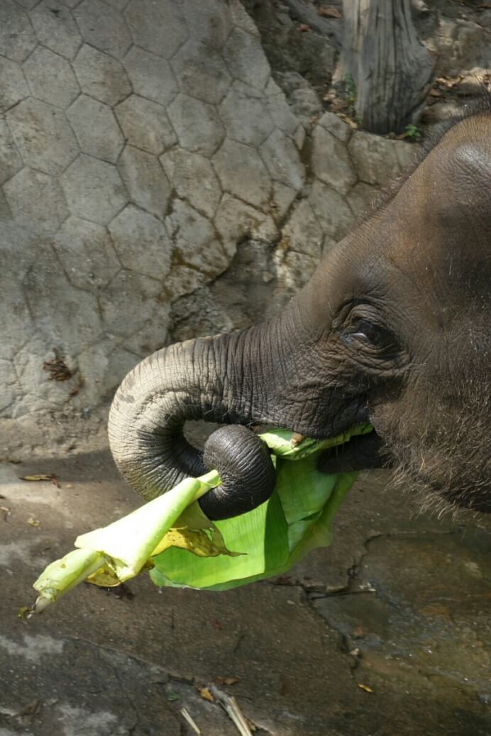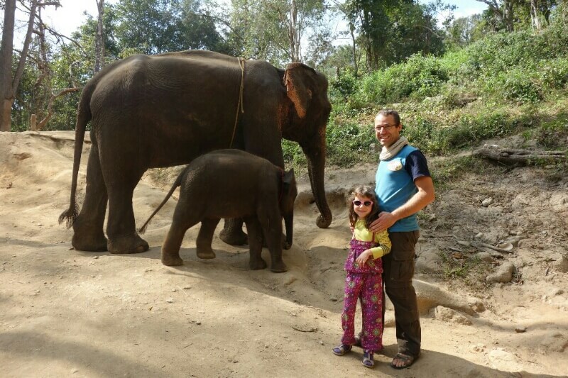 On voit aussi nos premiers éléphants. Mais ce premier contact ne nous a pas fait envie de faire un tour, trop touristique. On est content de leur donner à manger. C’était vraiment de l’exploitation animale.. On verra plus tard…