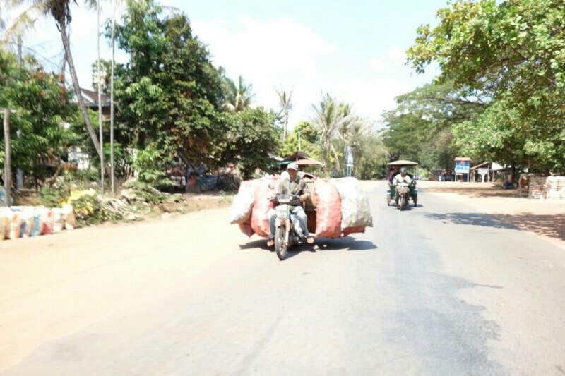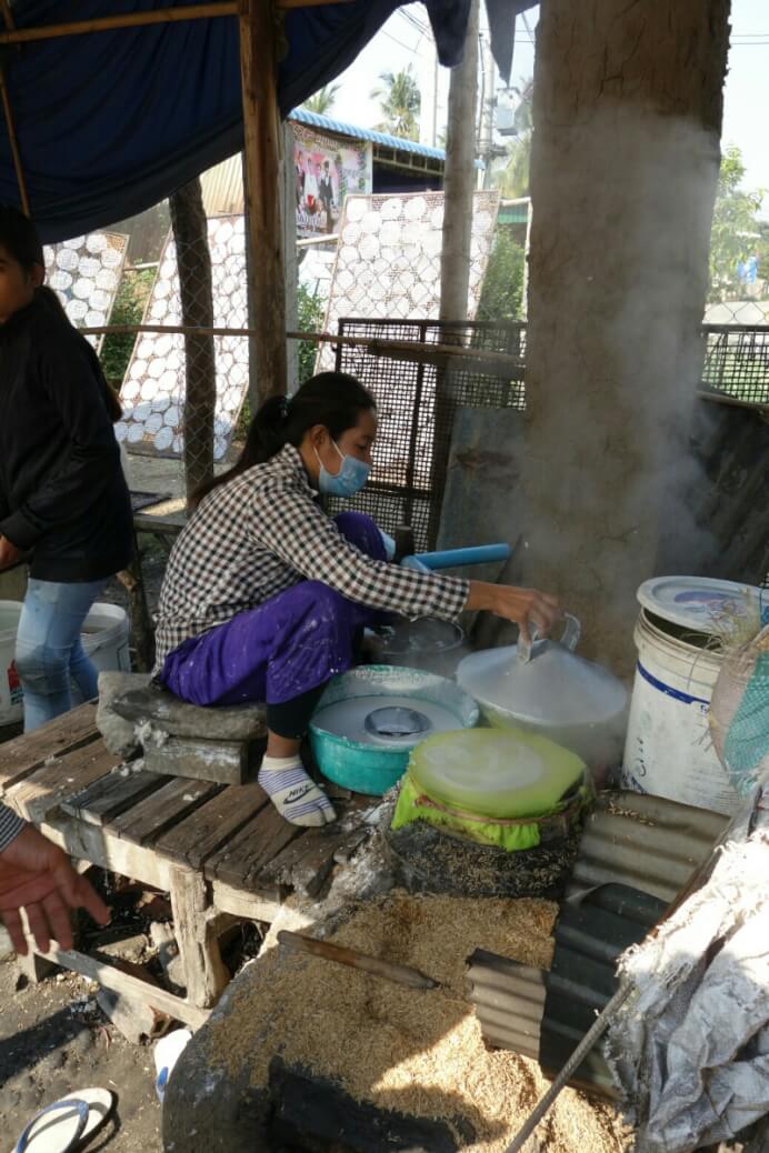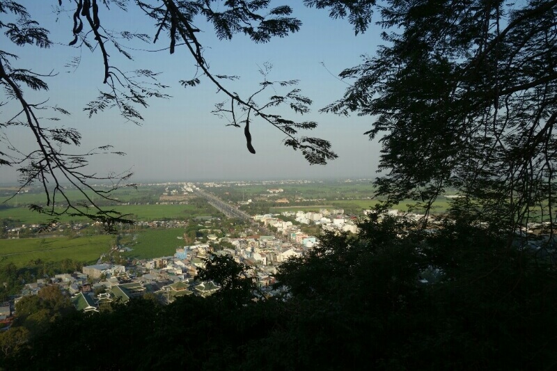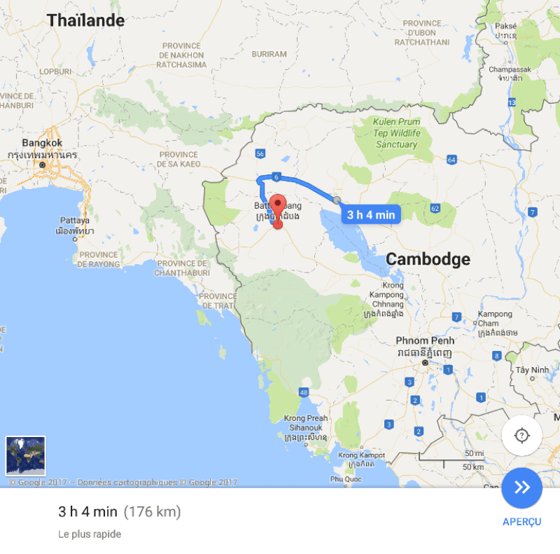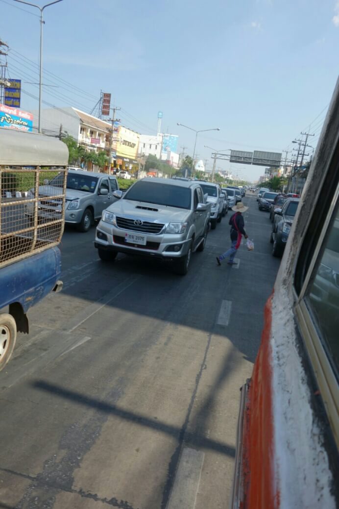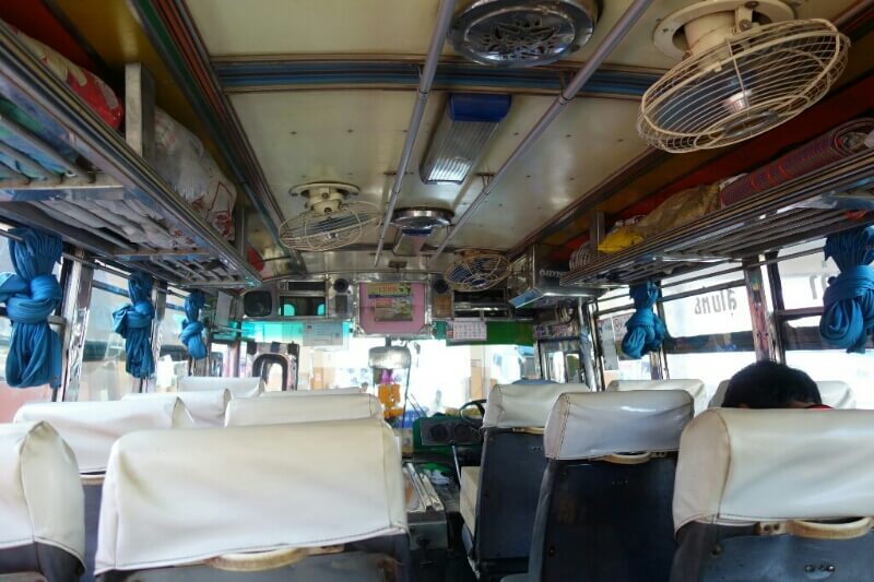 Une brochette à 10Bt plus tard, le billet acheté dans un immense terminal avec un guichet par destination différente, re-van pendant 1h30 avec des dizaines d’arrêts. Il faut imaginer un van bondé (10 places assises), avec jusqu’à 5personnes debouts, les sacs sur les genoux …