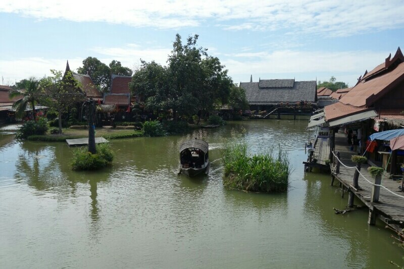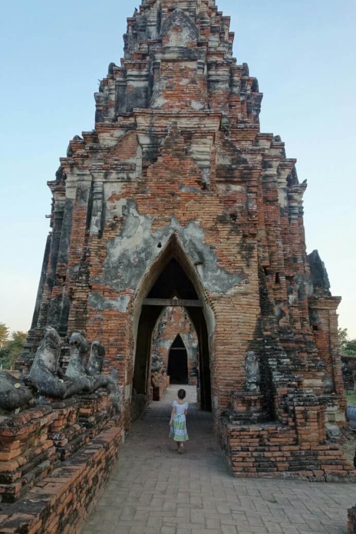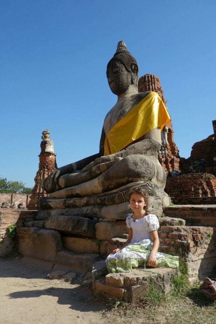 L’après-midi, on a réservé le tour de l’île d’Ayatthuya en bateau, avec arrêt dans 3 temples. Ça fait du bien aussi de se laisser traîner. Et comme on a pris un Tuk-tuk pour aller prendre le bateau, les enfants étaient ravis. Voir les temples avec le soleil couchant a un certain charme. Le long des berges, on voit aussi bien des palaces que des cabanes à moitié démolies sans transition entre elles.
