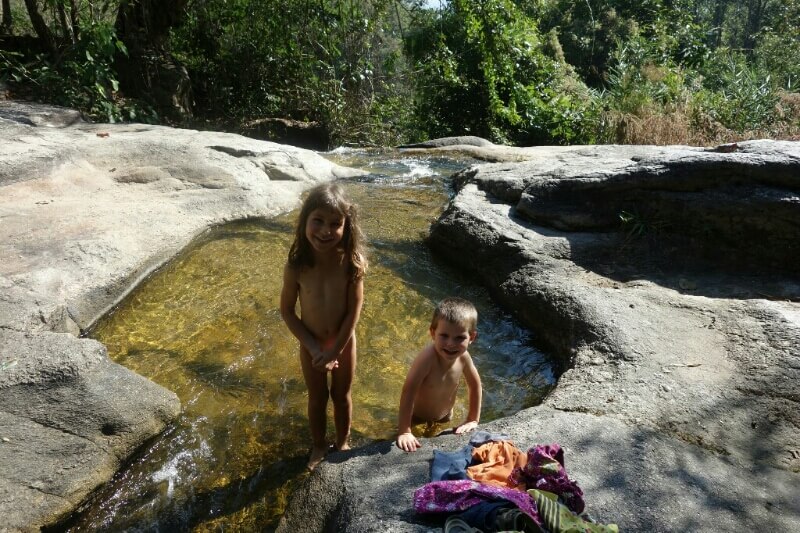 Les 2 derniers jours se veulent tranquilles. Il faut qu’on récupère de nos escapades et même si la jambe de Louise va mieux de jour en jour , ce n’est pas encore top. Ils profitent donc de la baignoire de notre chambre de luxe à grandes eaux.