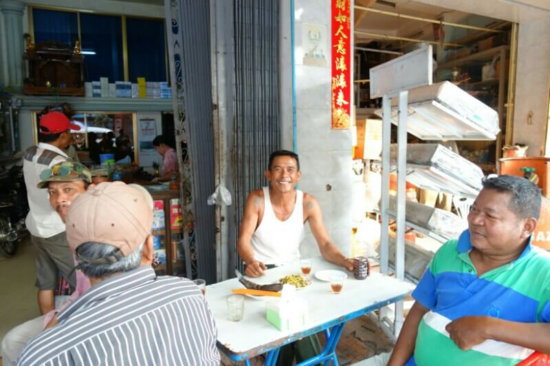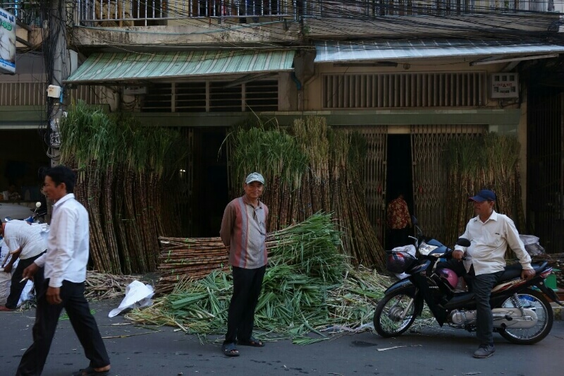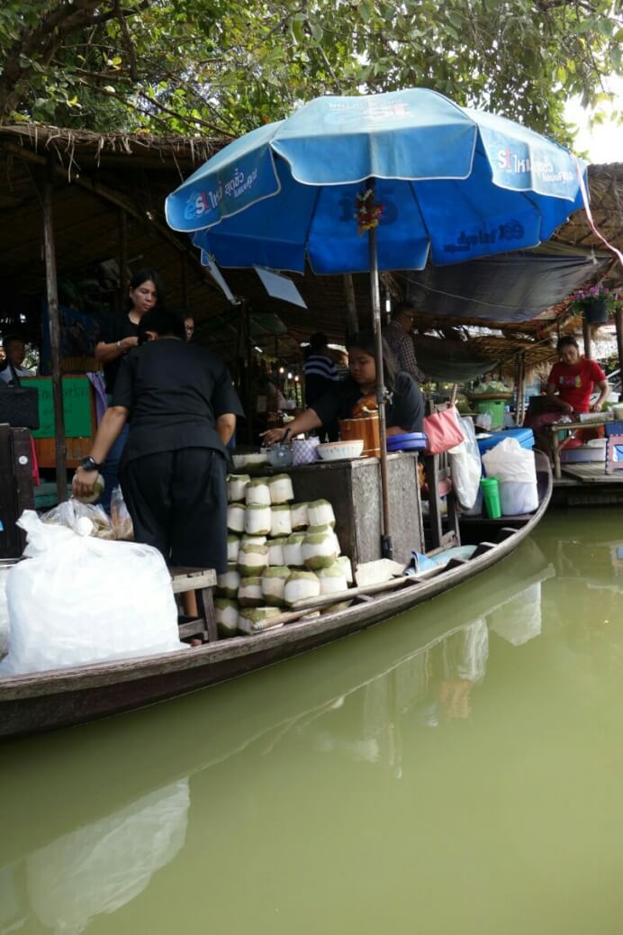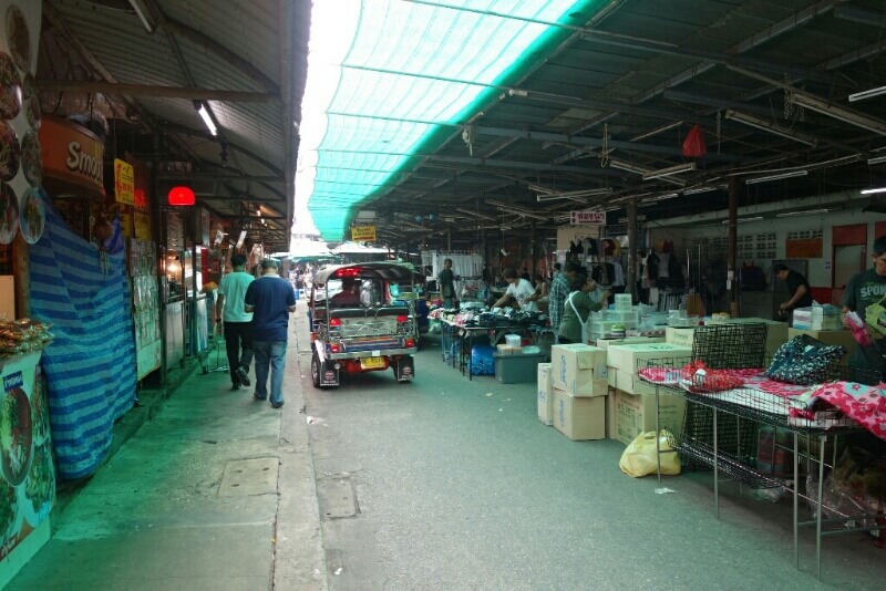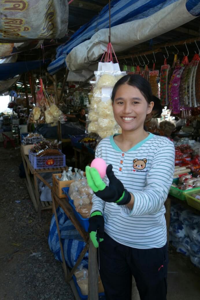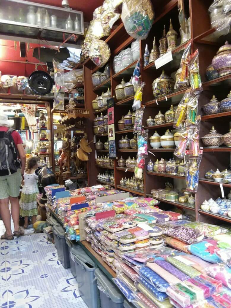 Des légumes, fruits (à des vrais prix locaux, 20bt pour 20 bananes (70cts) , des jeux pour enfants, des porte-bonheurs, des tickets de loterie. Il y a évidemment aussi les brochettes grillées et autre nourriture de rue. Des associations sont parfois improbables. Par exemple une pharmacie vendait aussi des œufs..