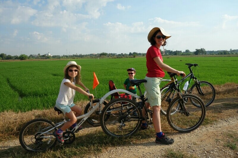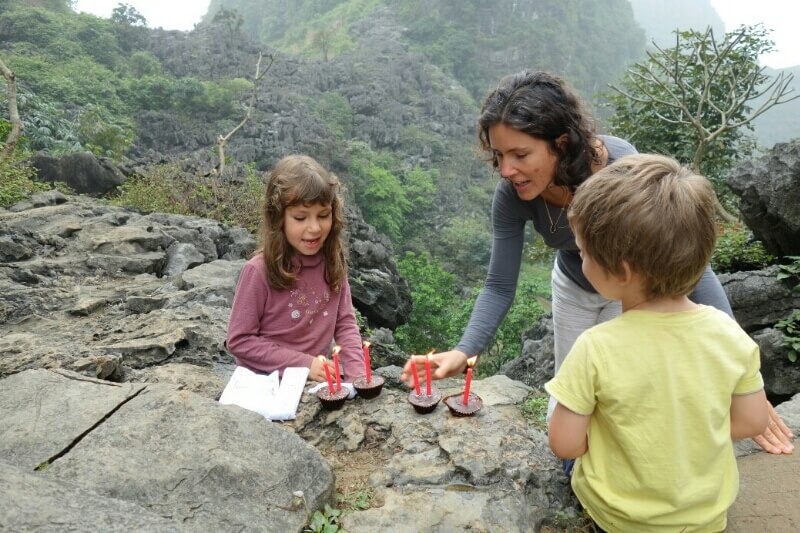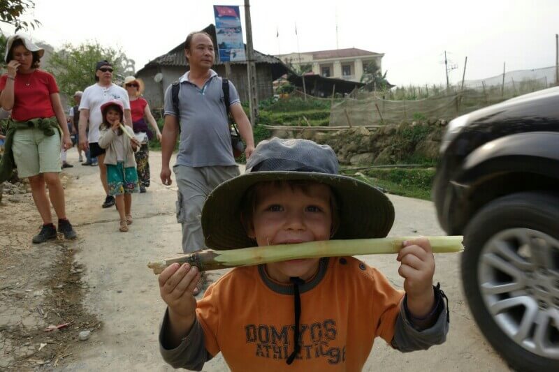 Ça a fait un beau tour, 64km. Un peu long pour les enfants, surtout par la contrainte du bus à prendre à 16h. A refaire par beau temps et sur plusieurs jours comme on a fait à Sapa.