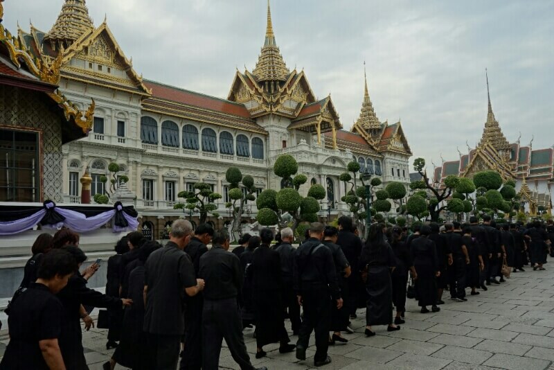 Les thaïlandais viennent en masse et attendent des heures car c’est la qu’est exposé la dépouille du roi. Du coup une grande partie est réservée pour l’hommage.