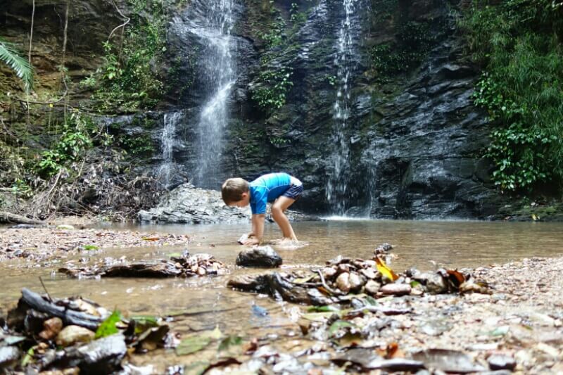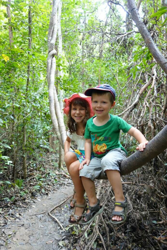 Jeudi, on part marcher dans le parc national au centre de l’île. Ce coup ci, c’est plus de 250m de dénivelé bien raide. Les enfants étaient moins rouges en arrivant que les autres randonneurs en tong..