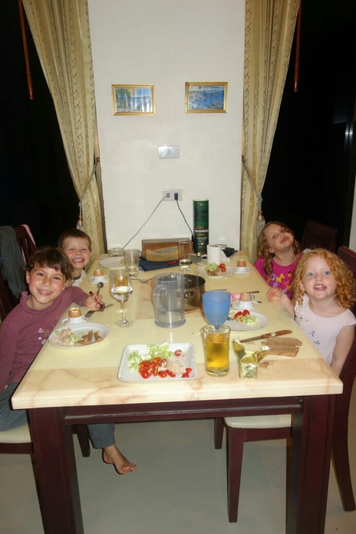 Les enfants sont ravis d’être rentrés, de retrouver les copains et les jouets. Par contre, pas de bol, Hugo a chopé une grosse gastro et vient de la donner à sa sœur.