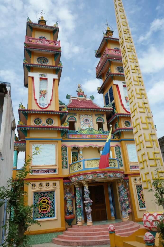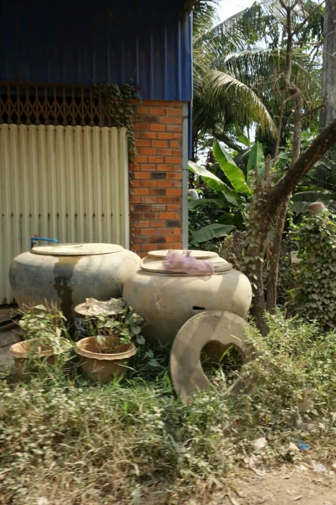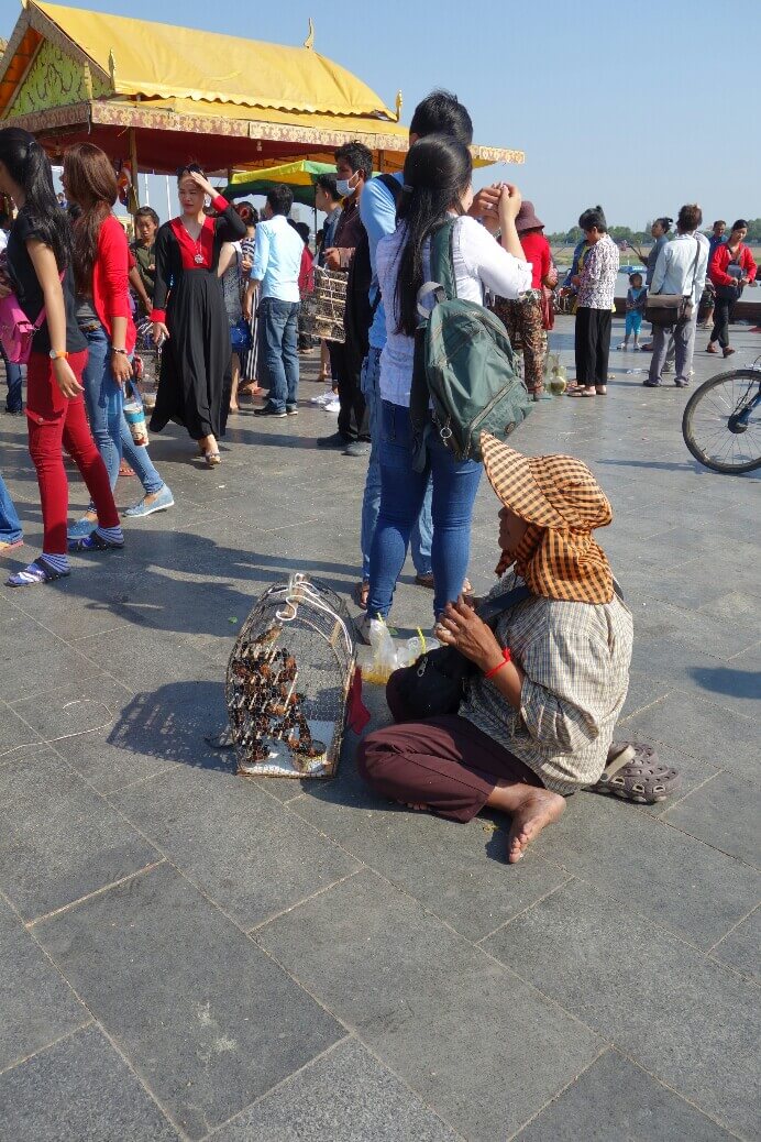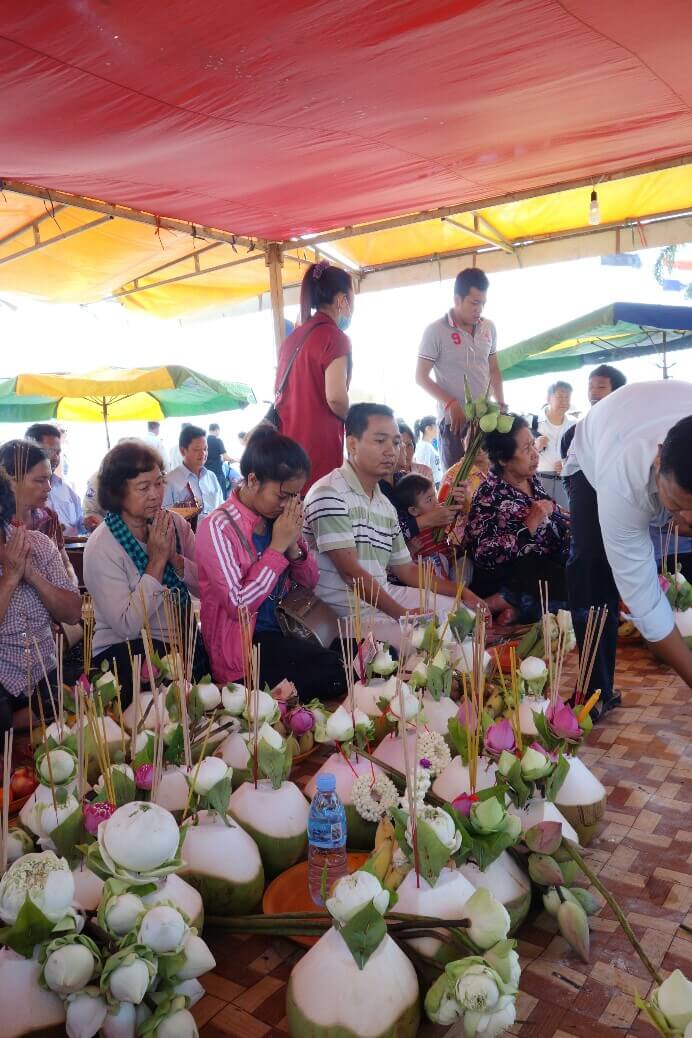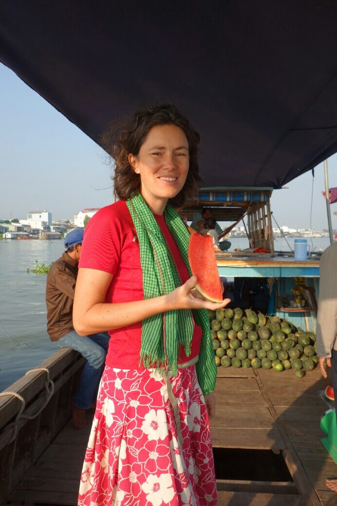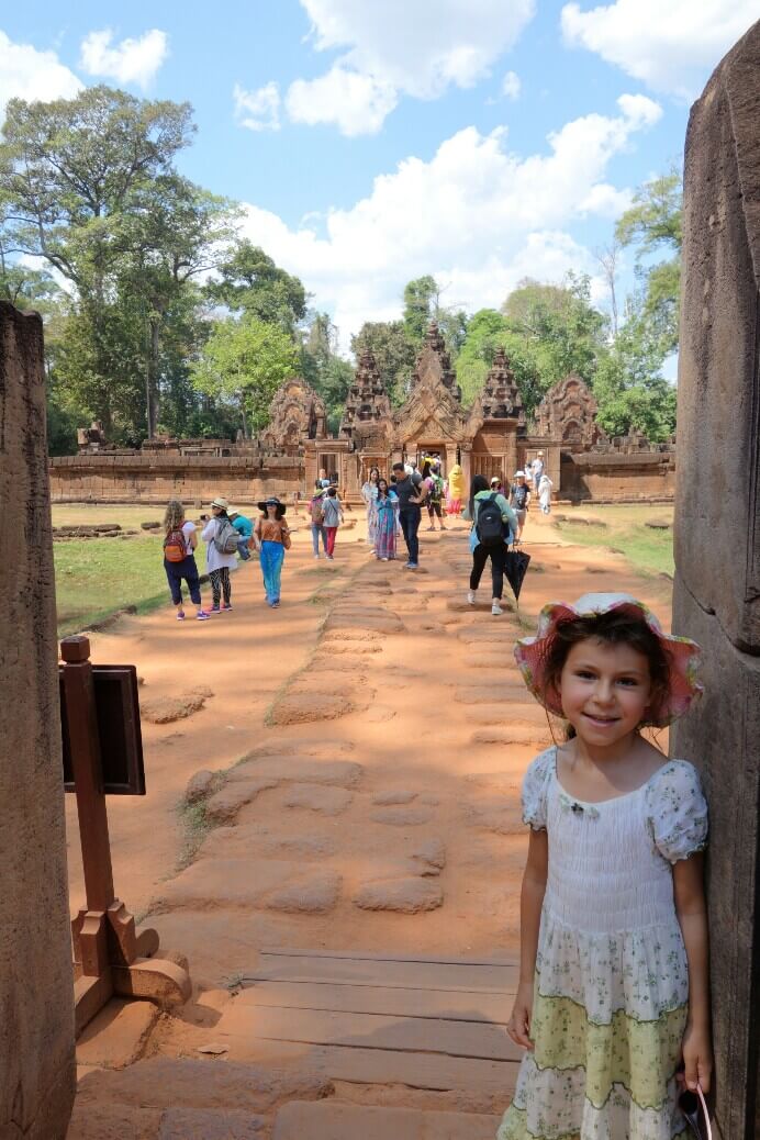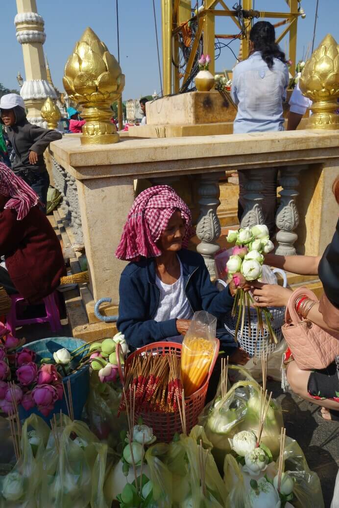 Comme on a pu sortir rapidement de l’aéroport, qu’il n’y avait pas trop de trafic et que la sieste s’est terminée vers 2h, même fatigués on part visiter un premier « petit » temple. On prend la navette fluviale et un tuk tuk (moto taxi tricycle) pour arriver au temple