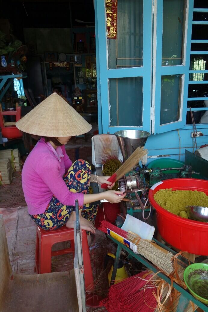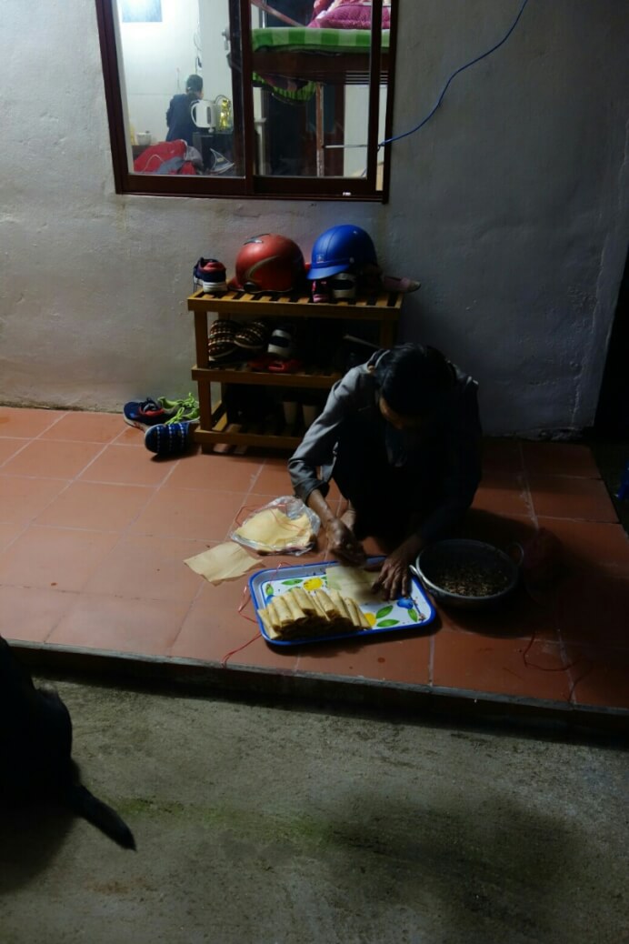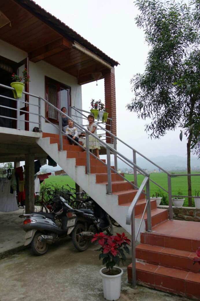 L’hébergement est prévu chez l’habitant. Et pour le coup, on est vraiment chez eux à partager la fin d’après midi et le repas. On se retrouve à vivre dans une maison visitée quelques jours avant au musée ethnographique d’Hanoï.