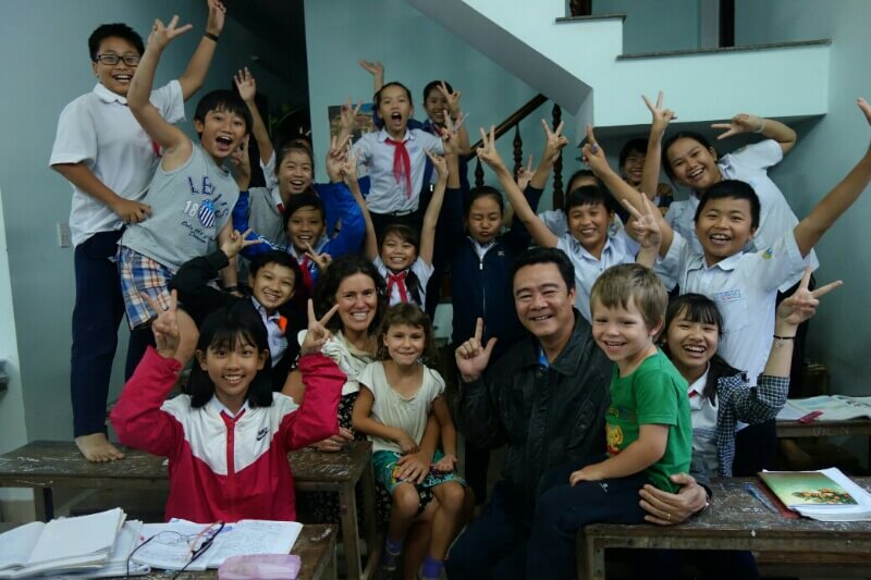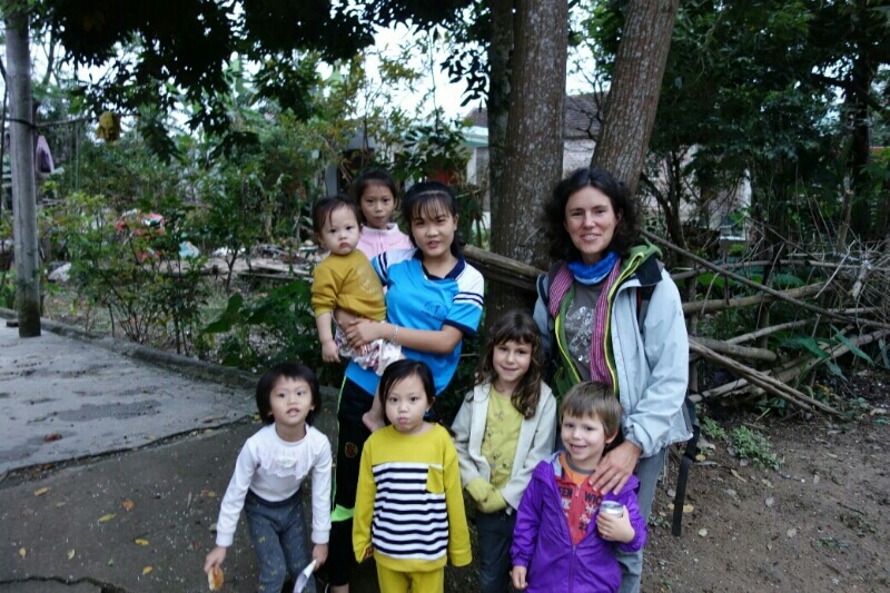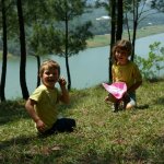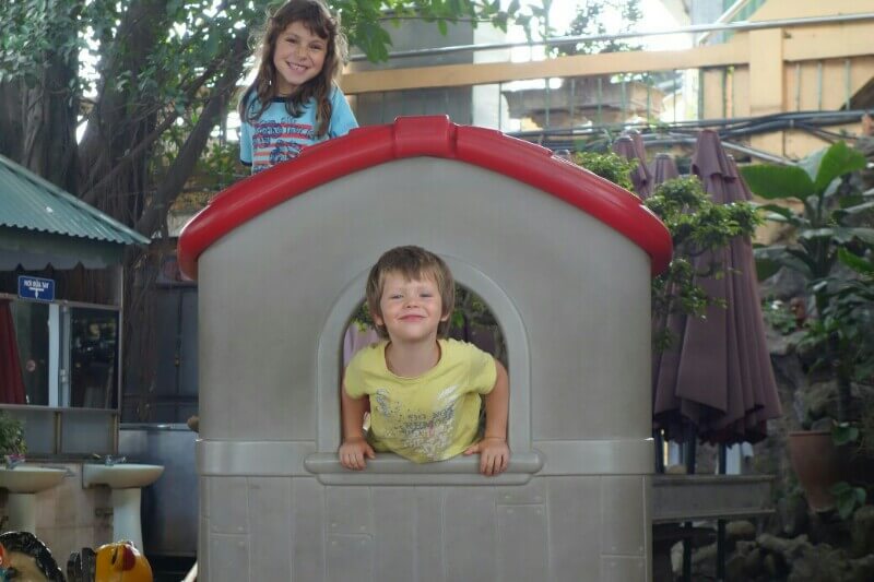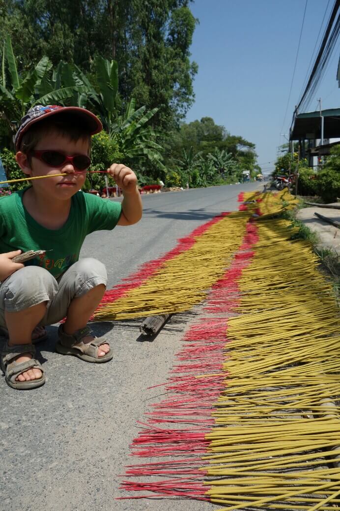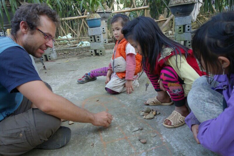 Le temps que l’eau chauffe, on joue avec les enfants au jeu appris au musée d’Hanoï.