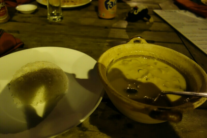 On commence à étouffer avec le nombre de touristes et on cherche un restaurant. On trouve dans le guide un restaurant au bord du fleuve, le seul du coin. il est dans la compagnie maritime et est impossible à trouver sans le connaître.