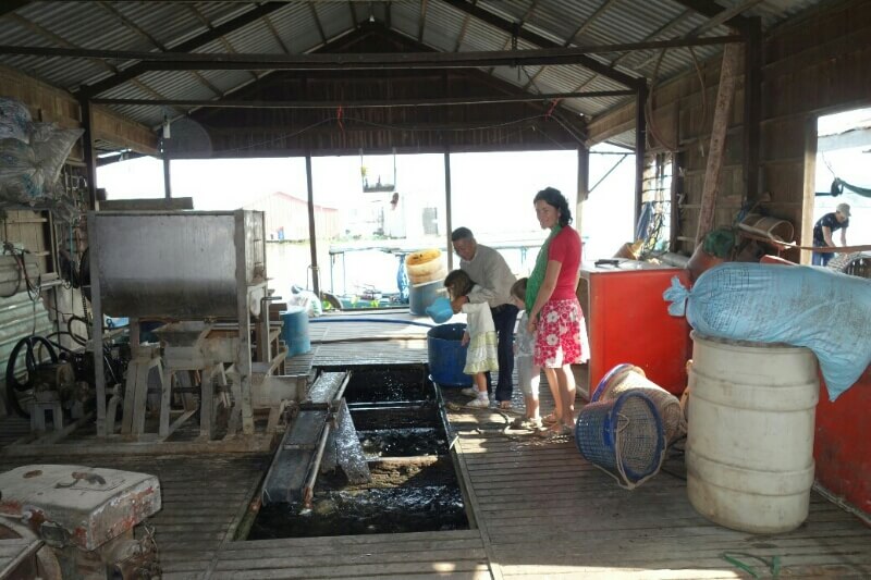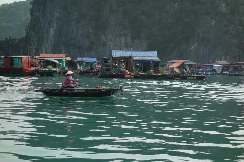 On part d’abord dans un village flottant de pêcheurs et ses nombreux bateaux de pêches.