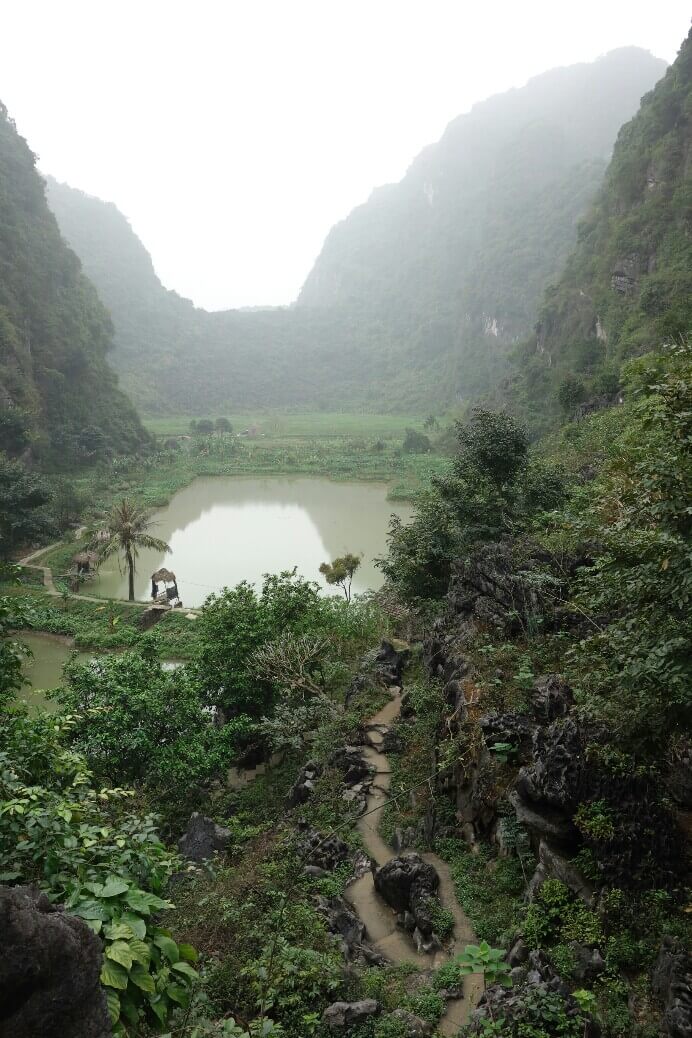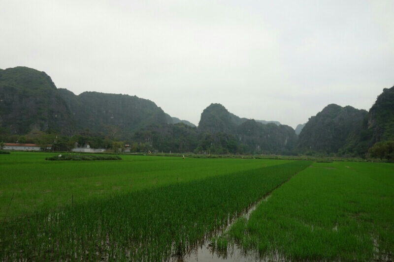 Après notre nuit agitée dans le bus mais finalement reposante grâce à la fin de nuit dans le lit des gérants de l’hôtel (cf dernière news), on part en vélo vers Ninh Binh. Tam coc n’est que le hameau de cette ville. La balade sous la grisaille digne de la Bretagne n’a rien de mémorable mais aère l’esprit et les jambes (20 km avec velos moyens..).