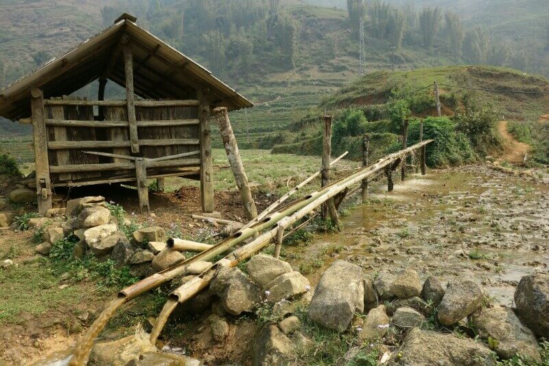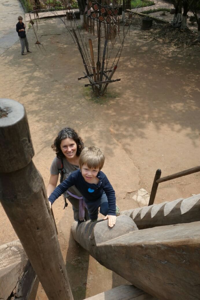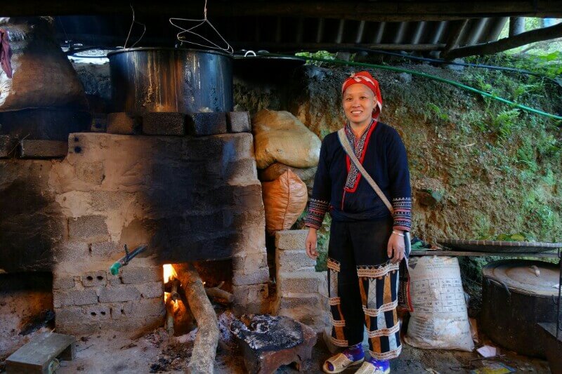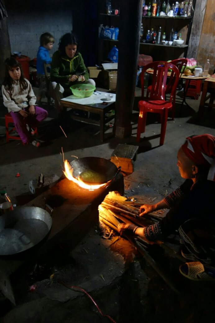 Le logement est plus rudimentaire (la douche est un robinet d’eau froide, un peu de savon et de l’eau chaude chauffée sur le feu), mais également très traditionnelle. On est ici dans la même ethnie que notre guide, les Hmong noirs.