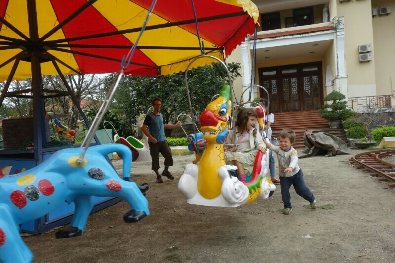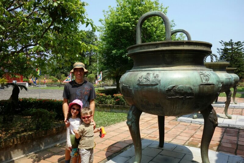 Mardi, après un bain de deux heures des enfants, on a visité la citadelle impériale. On a adoré. Il y avait une expo de magnifiques photos, des vestiges, des beaux bâtiments, des bunkers souterrains datant de la guerre d’Indochine. ..