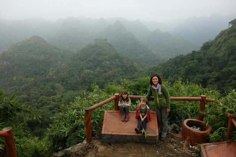 On fait la balade avec 2 français rencontrés le matin. Encore une fois, il fait bien humide et la couverture nuageuse est basse. Mais les paysages valent quand même le coup. Tout ceux qui ont un peu de temps attendent une accalmie pour aller faire l’Attraction du coin : le tour de barque à travers les grottes.