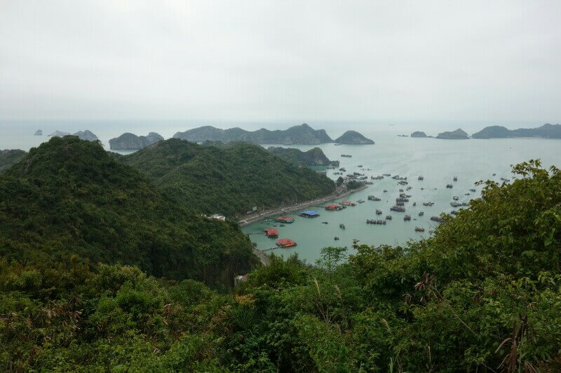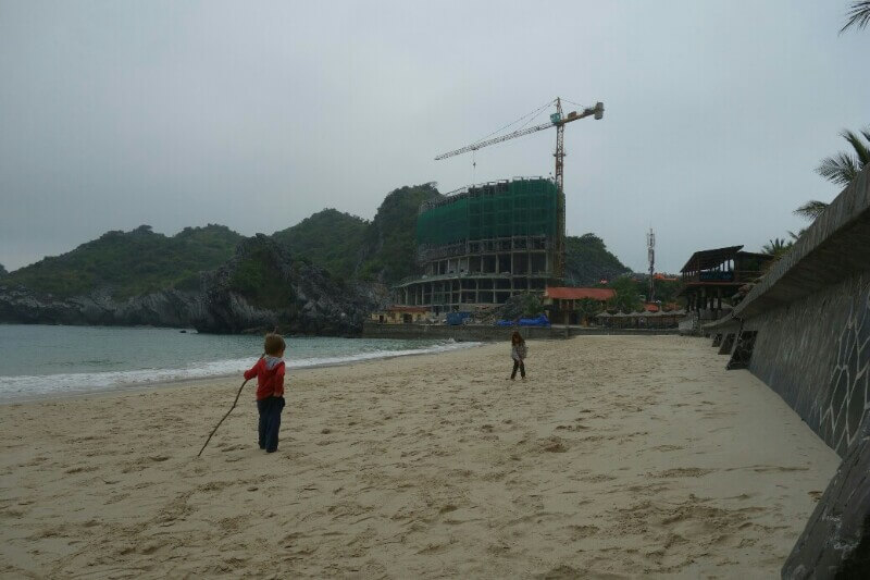 On arrive sur l’île via une navette bateau avant un autre bus. La ville de Cat Ba est à l’est de l’île. C’est un bon point de départ pour la baie de Lan Ha, moins couru qu’Along . En plus, on est en basse saison ici. Les rues sont désertes et 1 hôtel sur 2 est en travaux. Ils construisent aussi d’énormes immeubles. Dommage, qu’ils n’apprennent pas des erreurs commises dans la ville d’Along.